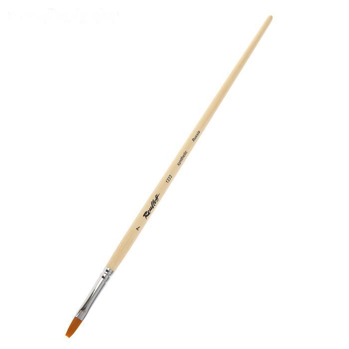 Кисть Roubloff рыжая мягкая Синтетика, плоская, серия 1222 № 7, ручка длинная пропитана лаком, белая обойма