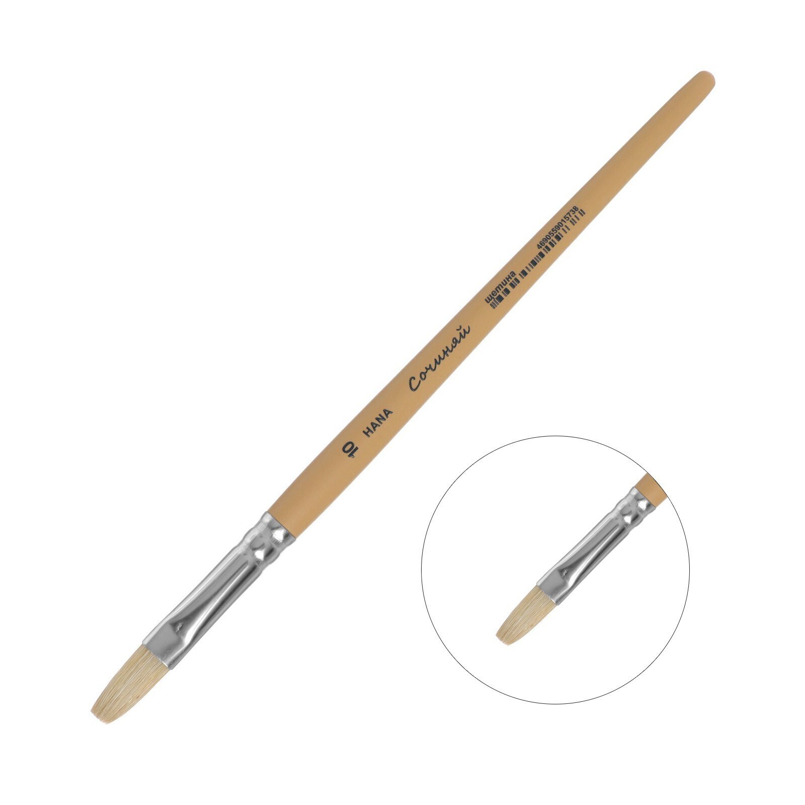 Кисть Щетина плоская, HANA Сочиняй № 10 (длина волоса 20 мм), короткая ручка матовая