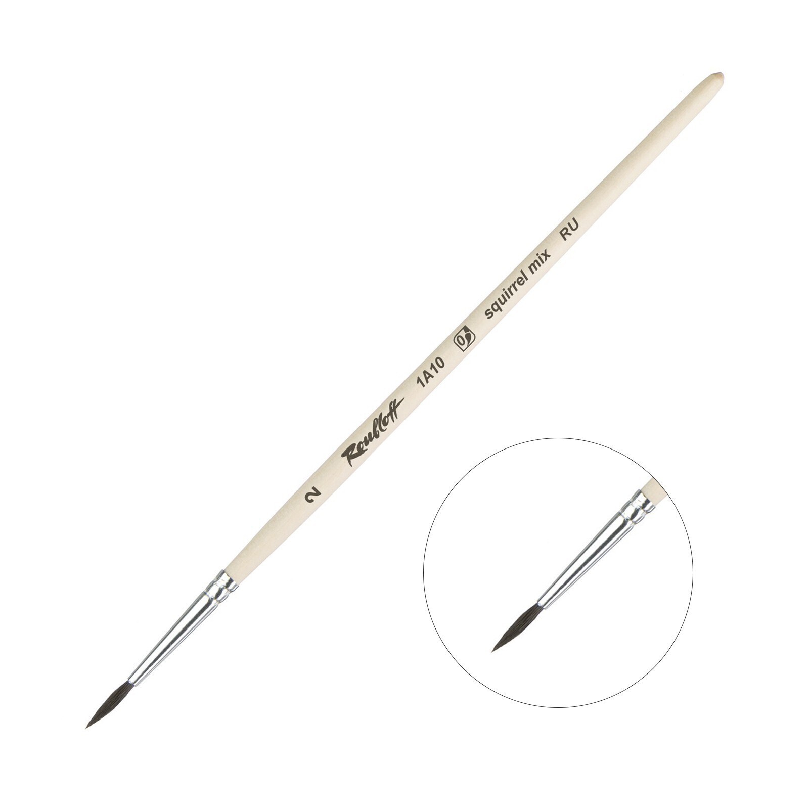 Кисть Белка круглая, Roubloff серия 1А10 №2, короткая ручка покрыта лаком, МИКС