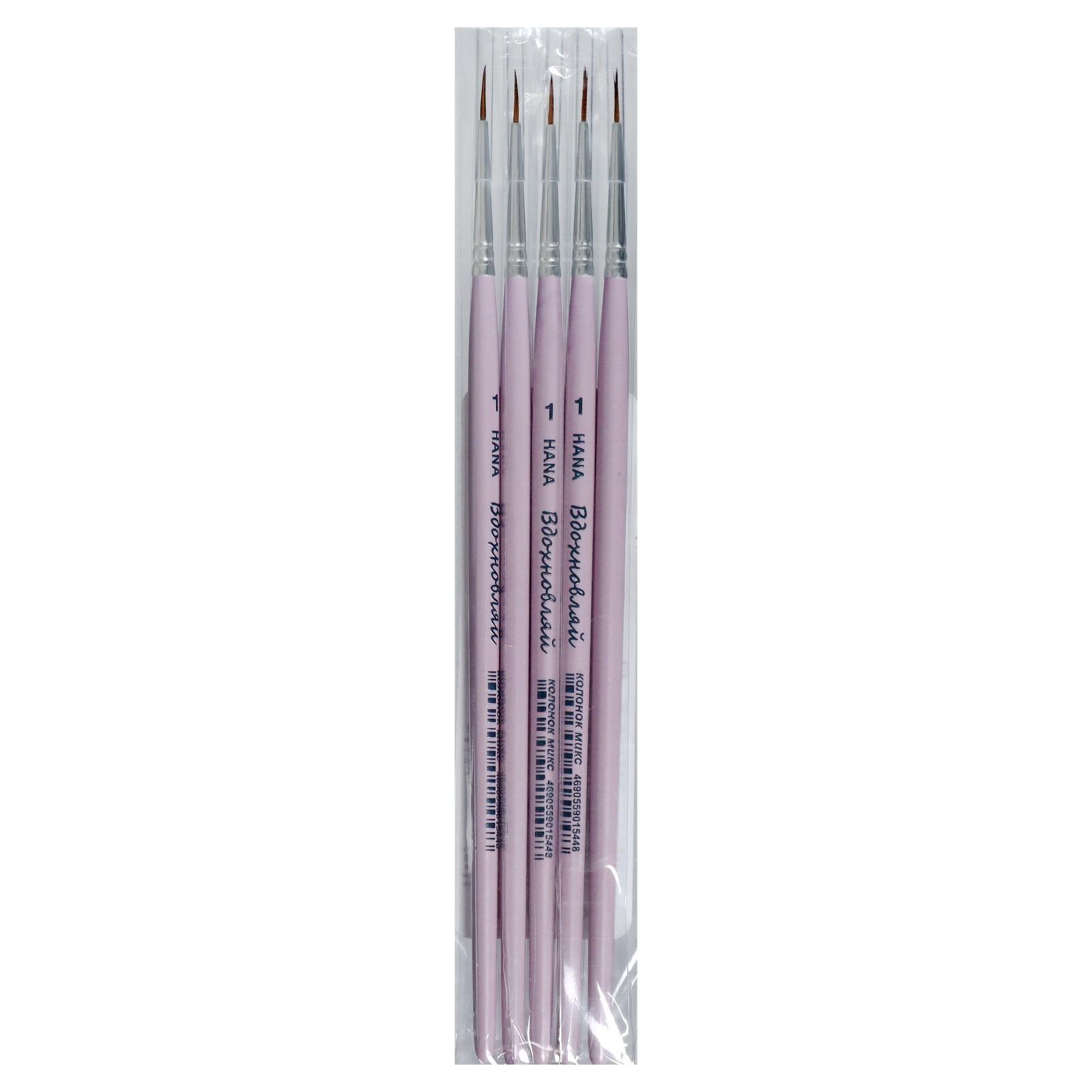 Кисть Колонок + Синтетика круглая, HANA Вдохновляй № 1 (длина волоса 9 мм), короткая ручка матовая