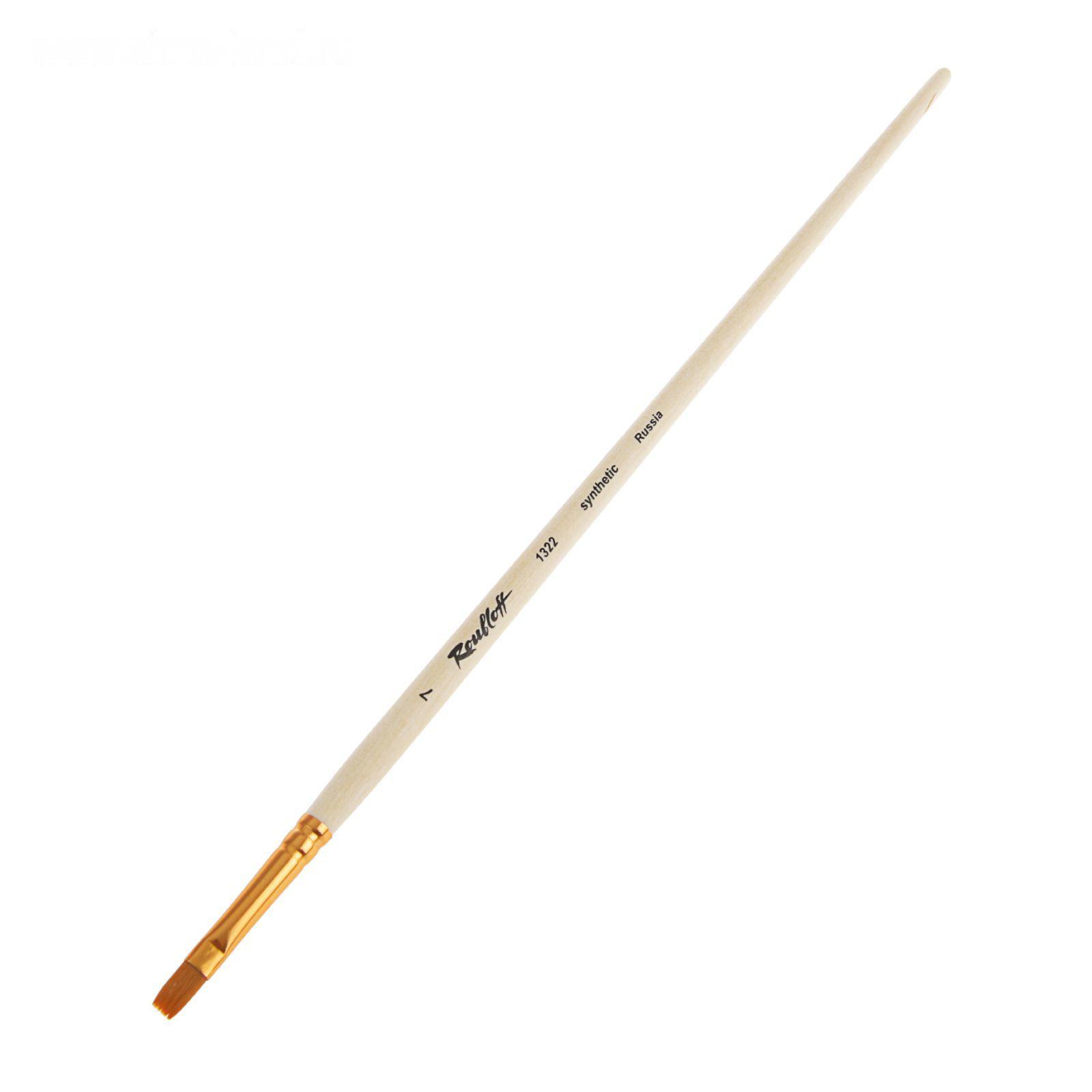 Кисть Roubloff рыжая мягкая синтетика, плоская укороченная вставка, серия 1322, № 7, ручка длинная пропитана лаком, белая обойма