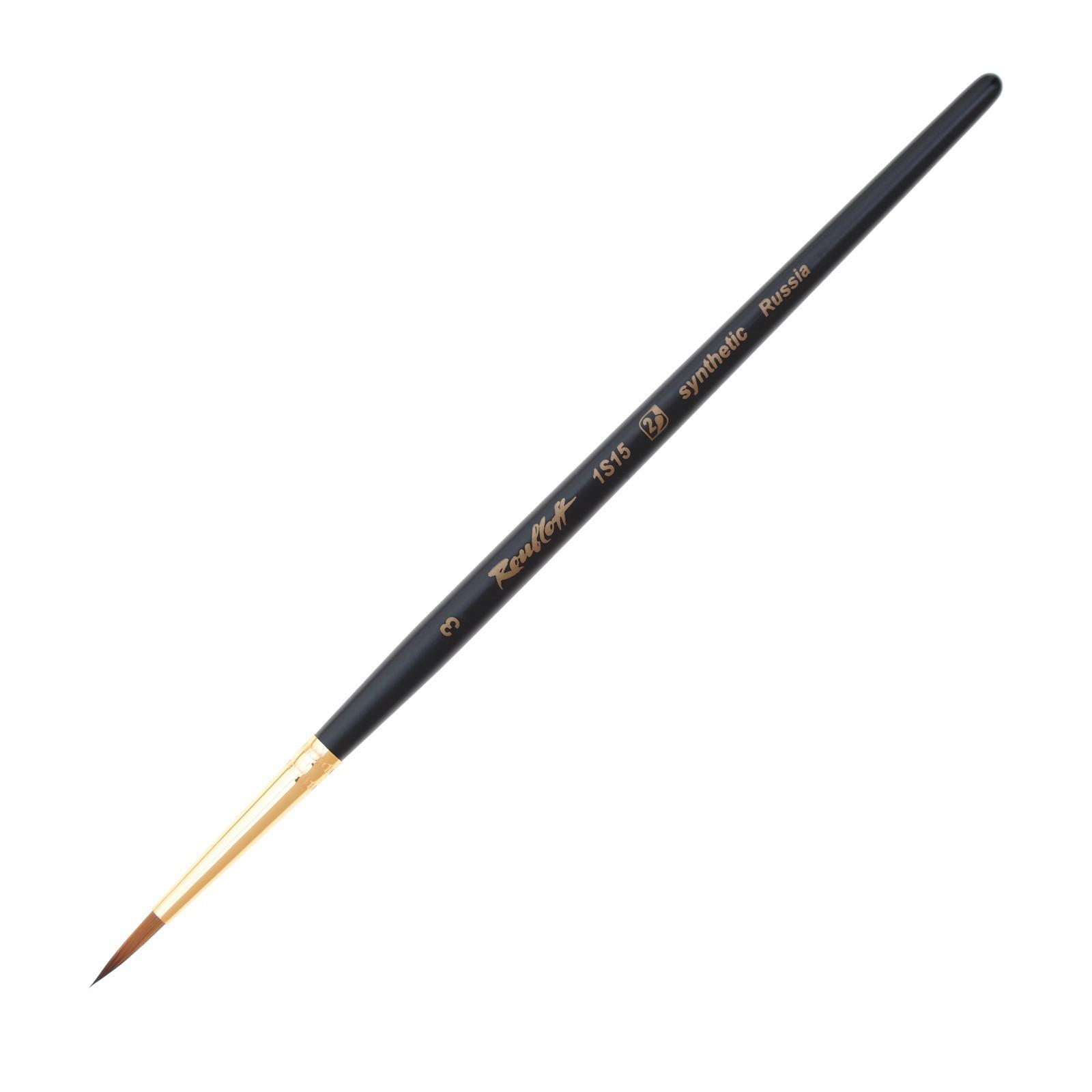 Кисть Синтетика, имитация колонка, круглая, Roubloff серия 1S15 № 3, ручка короткая чёрная матовая, жёлтая обойма
