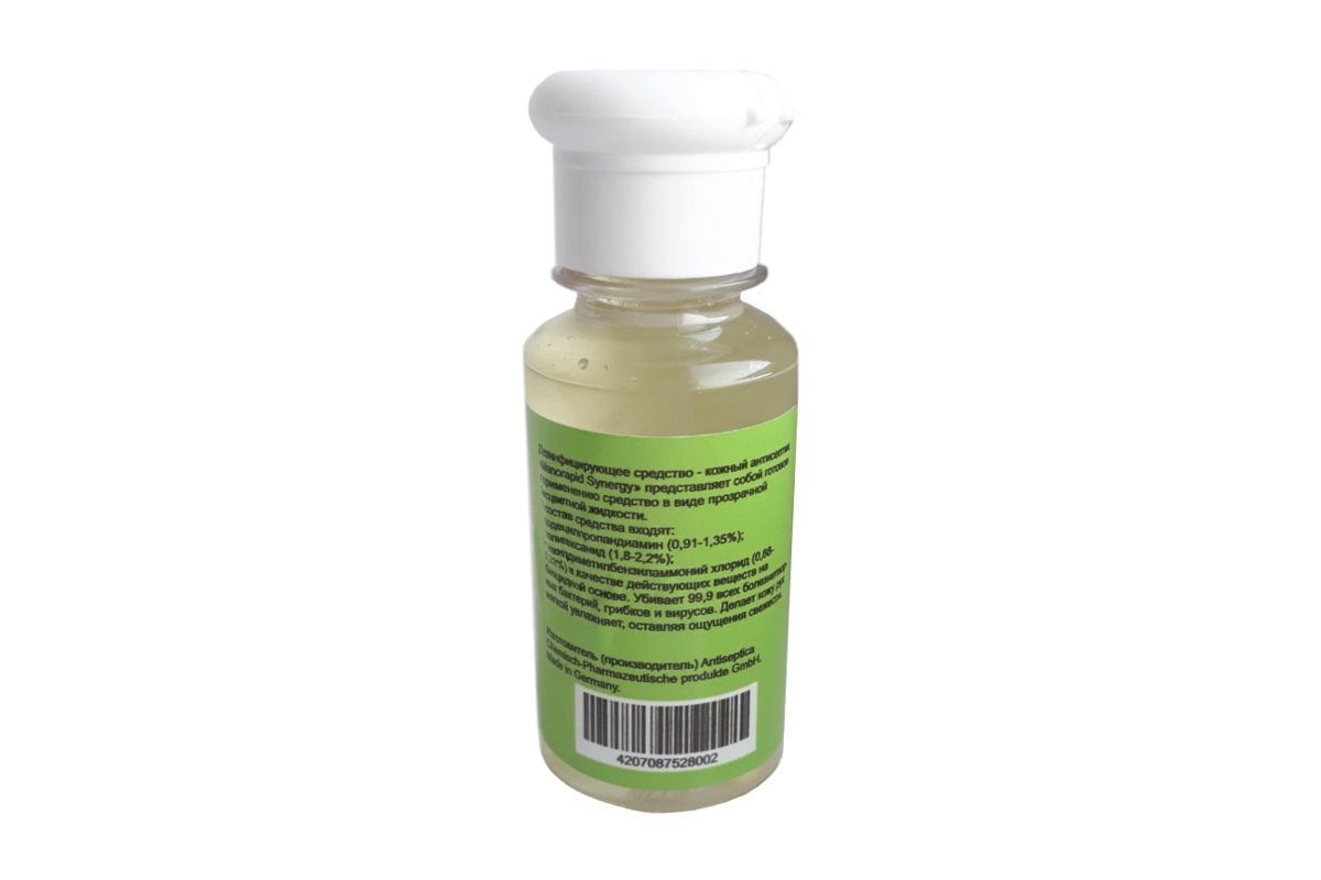 Дезинфицирующее средство - кожный антисептик ''Manorapid Synergy'' представляет собой готовое к применению средство в виде прозрачной бесцветной жидкости со спиртовым запахом.