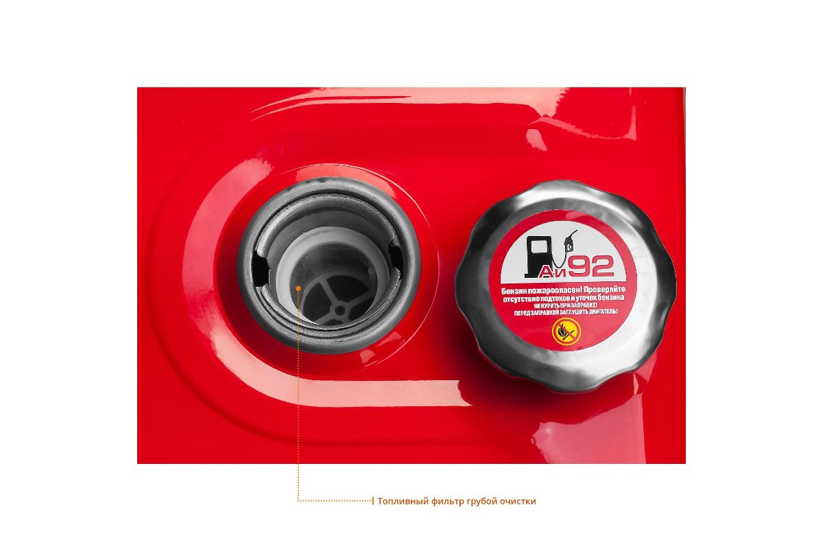 Топливный бак объёмом 3,6 л. Обеспечивает долгую и непрерывную работу до 3 часов на одной заправке.
