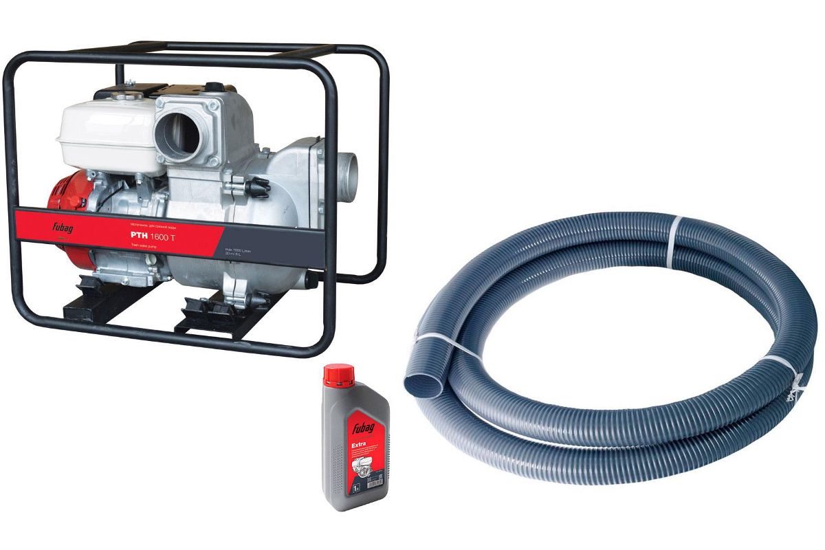 Набор: Мотопомпа FUBAG PTH 1600Т+Масло моторное FUBAG Extra 838265+Рукав всасывающий FUBAG FHT 4/8 (