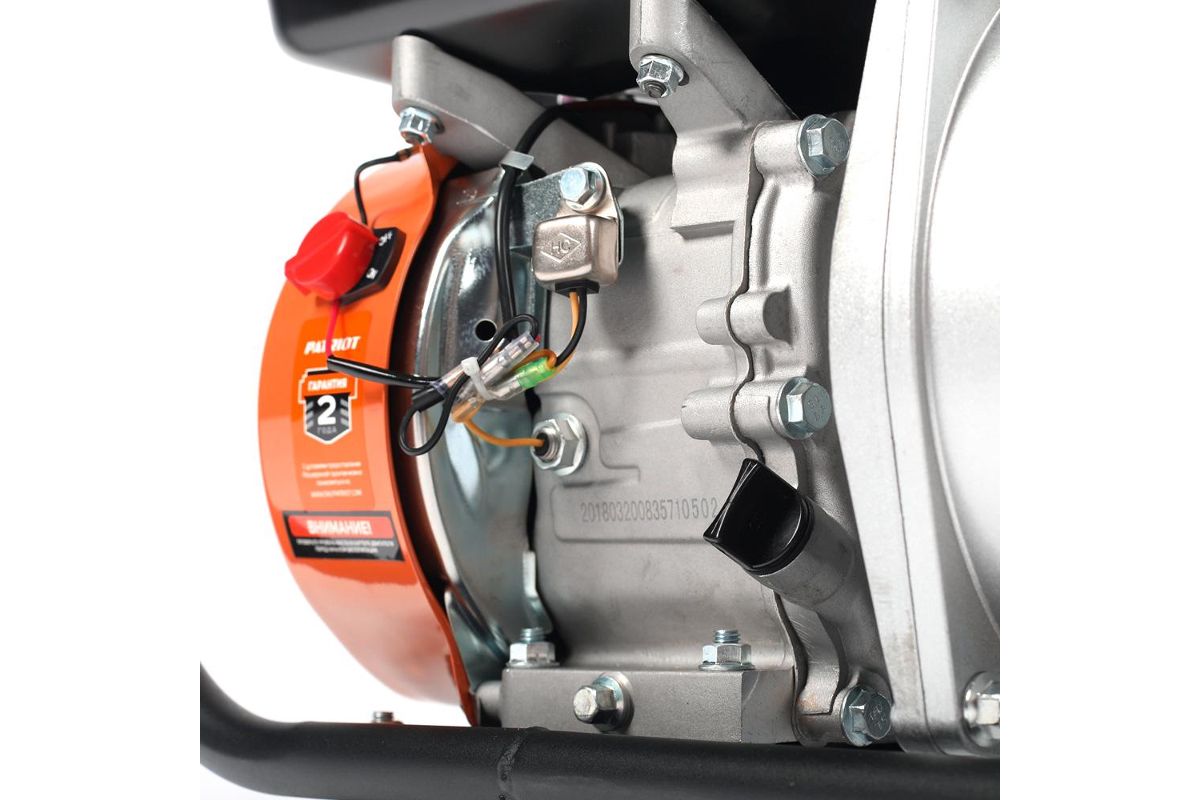 Двигатель 4-т, АИ-92, 196сс, 6.5 л.с., самовсасывающая, максимальная производительность - 60 м3/ч (1000 л/м), максимальная глубина всасывания - 8 метров, максимальный напор - 30 метров, диаметр патрубков - 3'', объём топливного бака - 3,5 л, стартер - ручной, вес 25 кг.