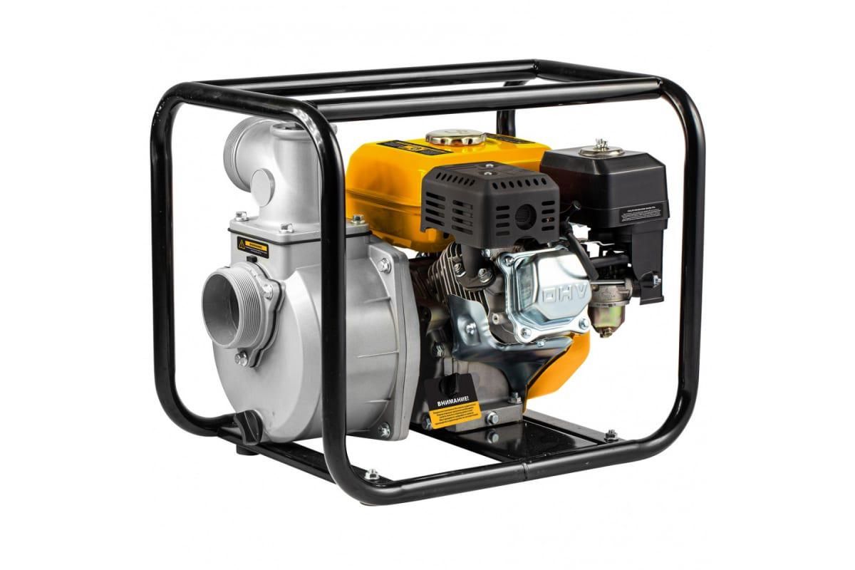 - Рама имеет широкое основание, что способствует устойчивости мотопомпы;