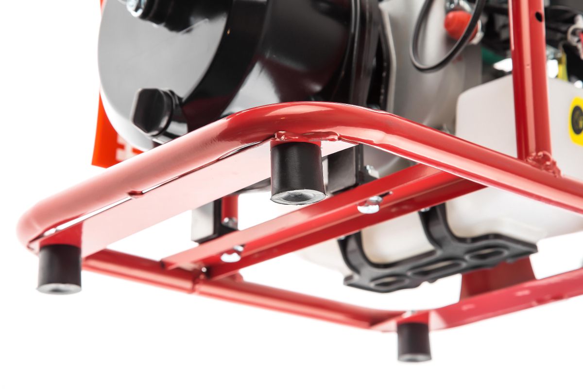 Металлическая рама на ножках надёжно стоит на плоских поверхностях и гасит вибрации во время работы.