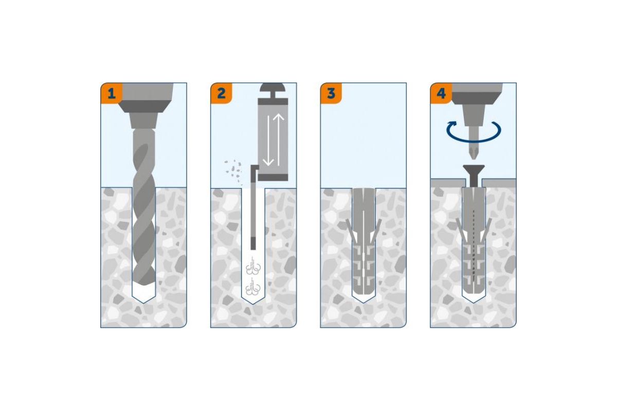 Оригинальные и проверенные нейлоновые дюбели для бетона и кирпича.