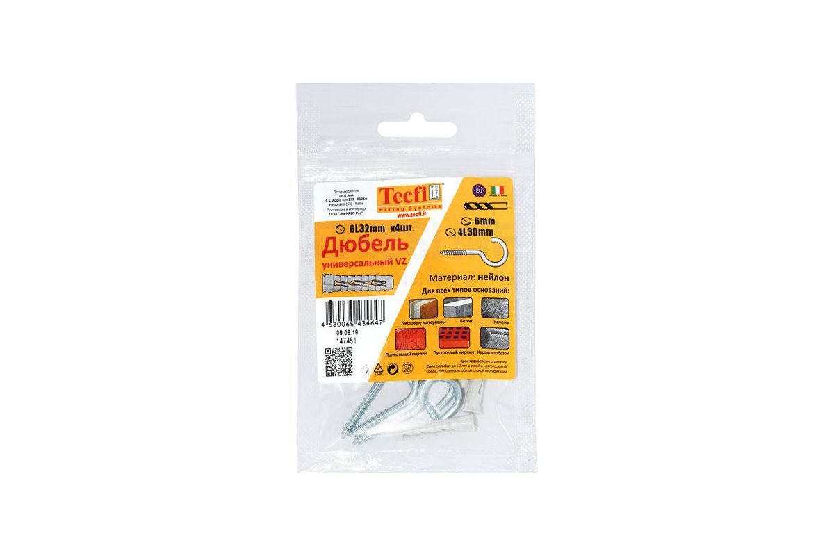 Дюбель универсальный TECFI VZ нейлон 6x32 (4 шт) (147451) пакет, с шурупом-полукольцом