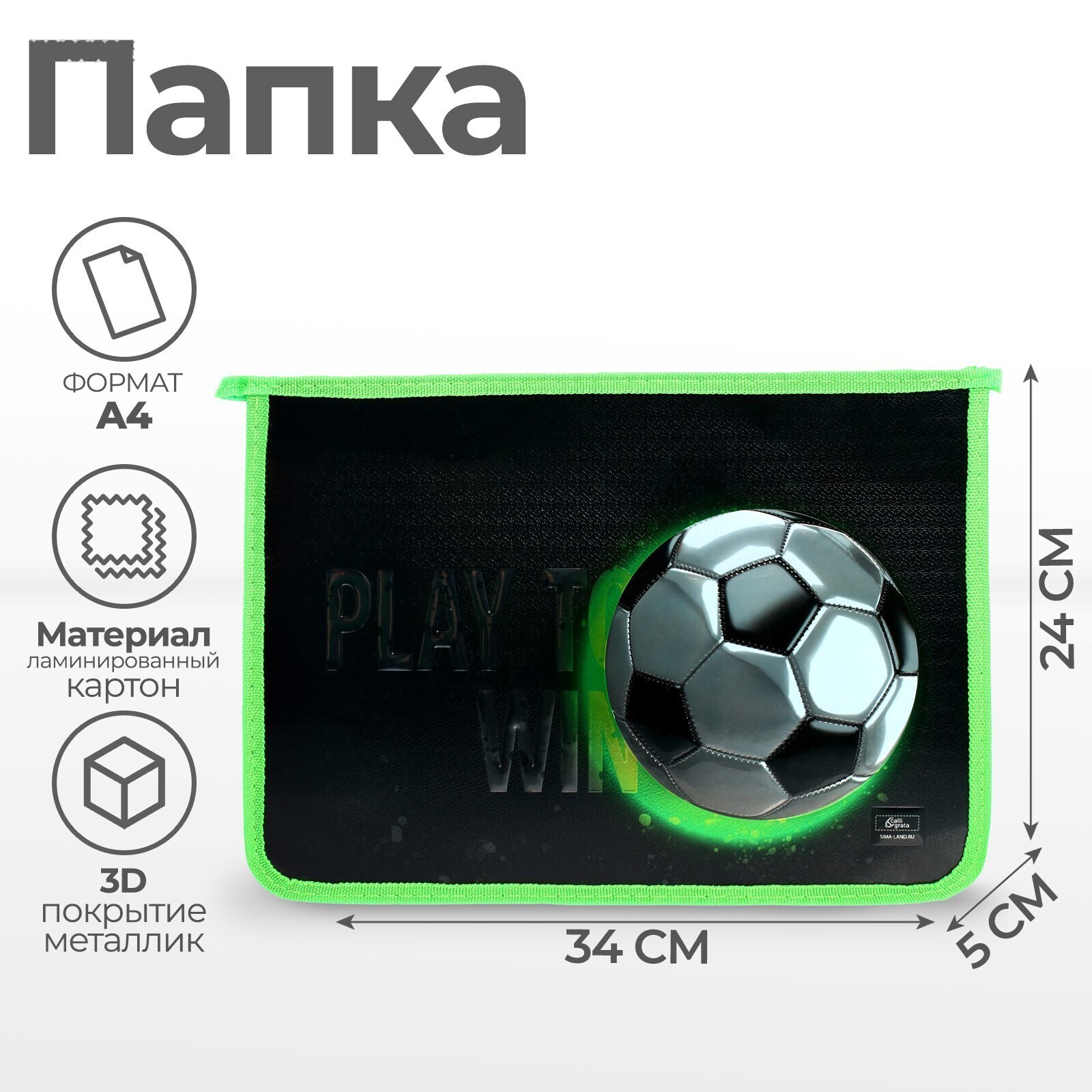 Папка для тетрадей А4, 230 х 325 х 50 мм, молния свкрху, Calligrata "Мяч", объёмный 3D-рисунок с эффектом металлика