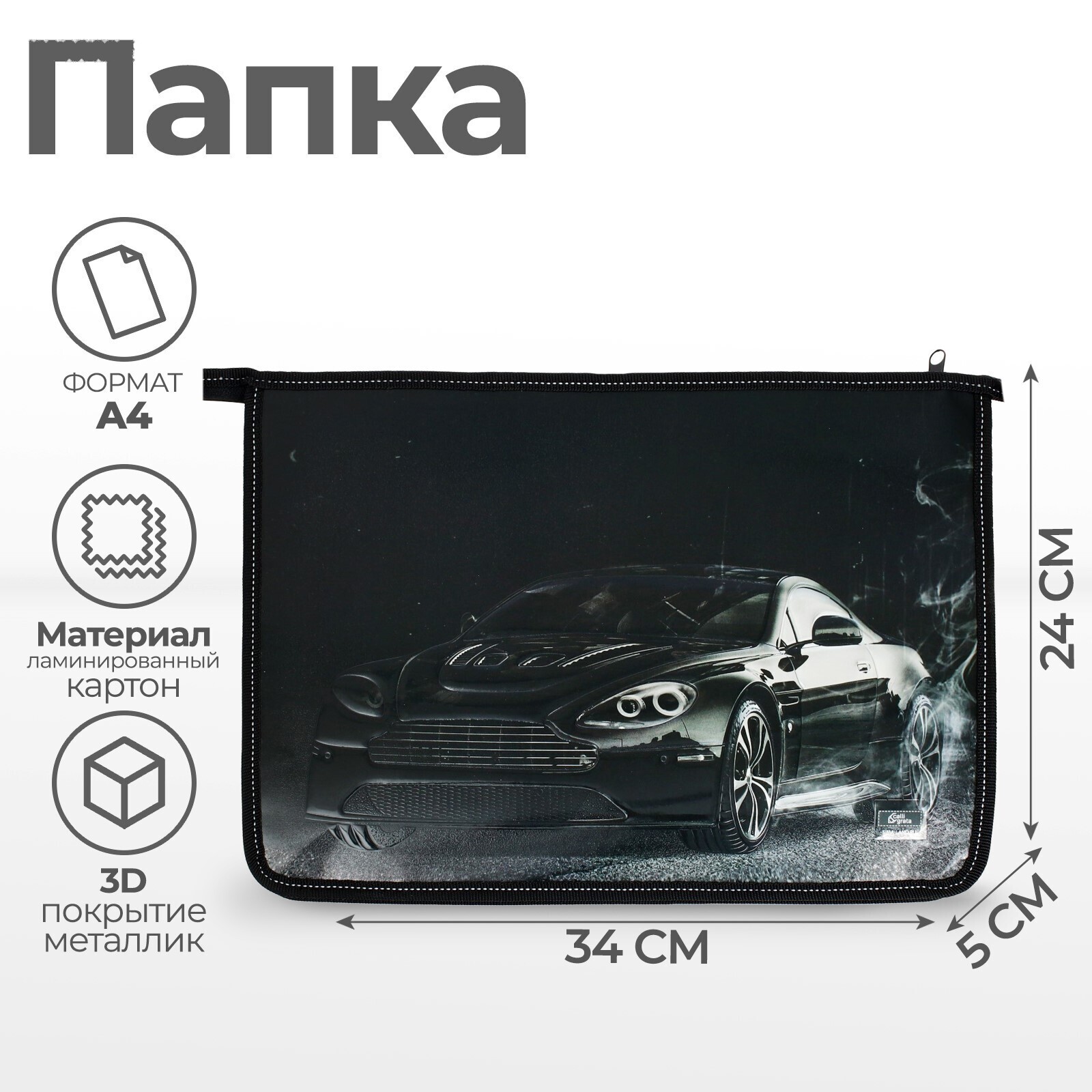 Папка для тетрадей А4, 230 х 325 х 50 мм, молния свкрху, Calligrata "Тачка", объёмный 3D-рисунок с эффектом металлика