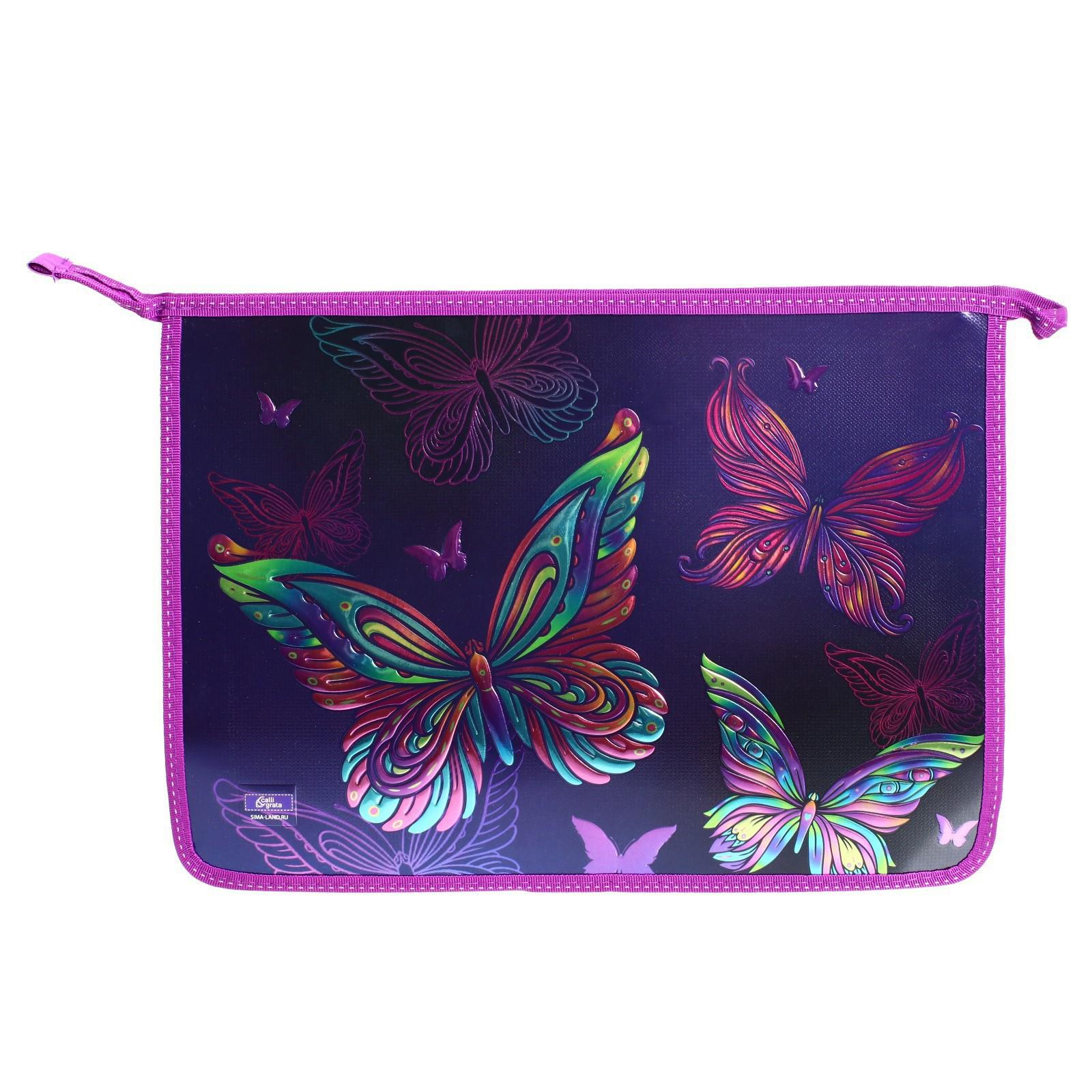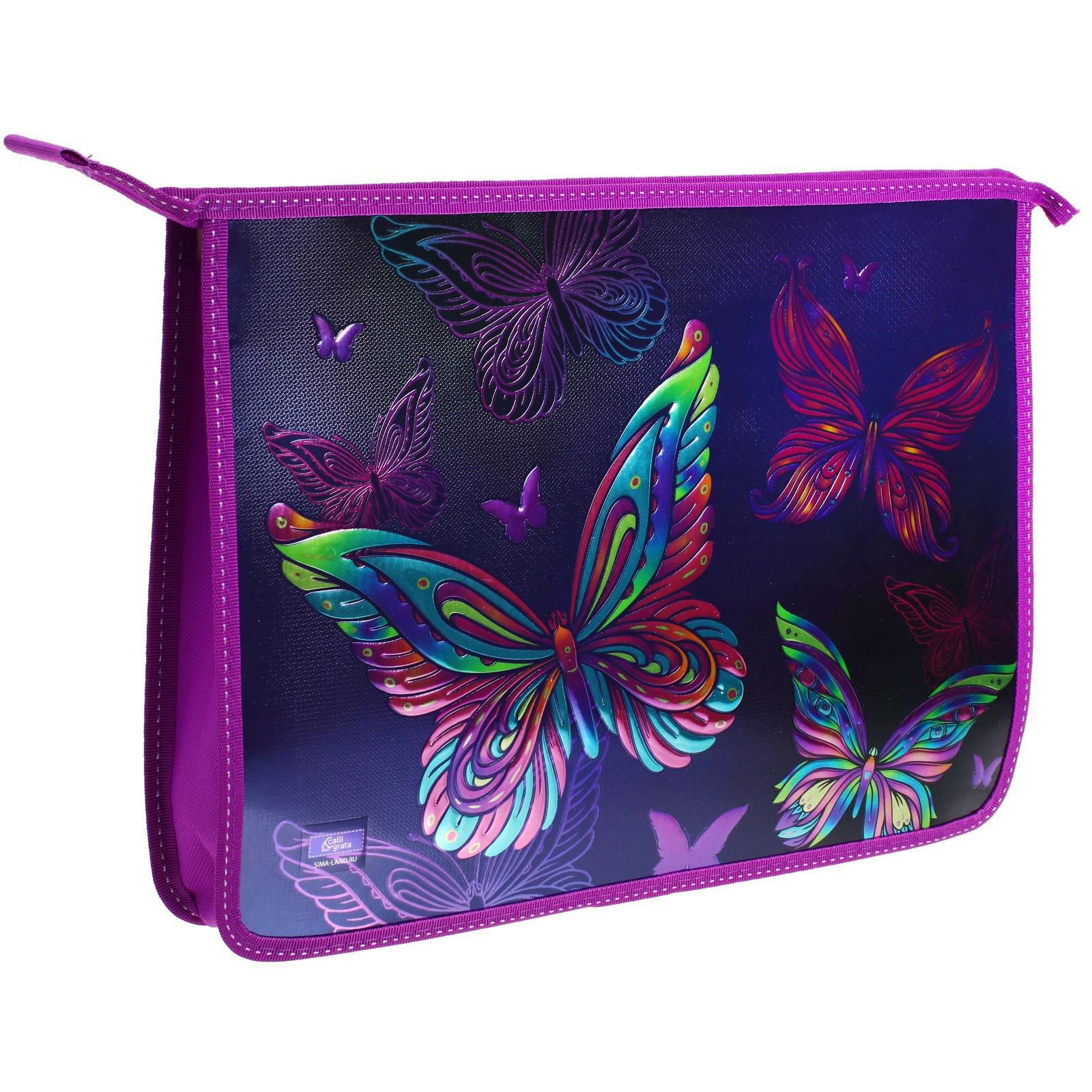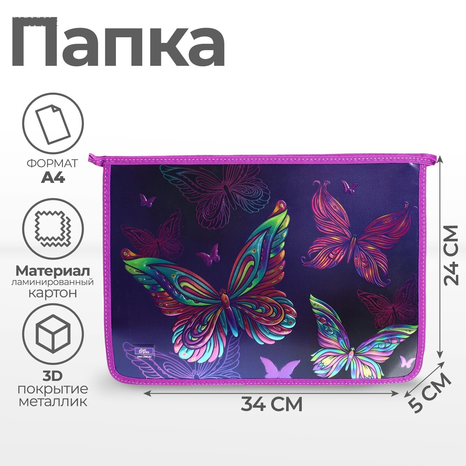 Папка для тетрадей А4, 230 х 325 х 50 мм, молния свкрху, Calligrata "Бабочка", объёмный 3D-рисунок с эффектом металлика