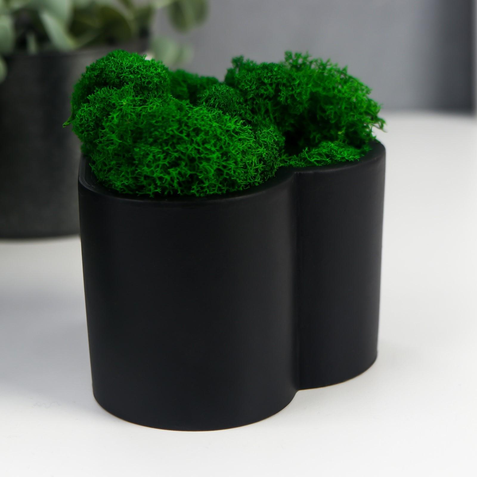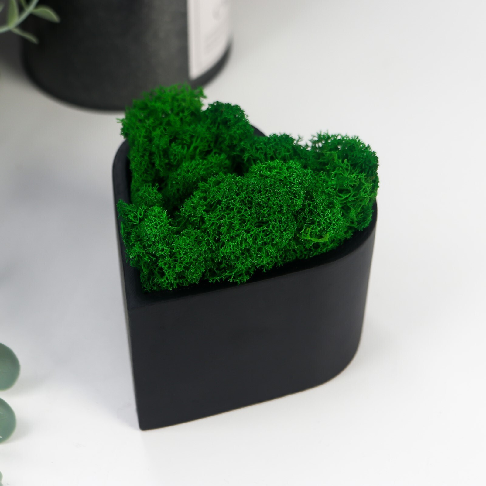 Кашпо бетонное "Сердце" высота 6,5 см черное со мхом (мох зеленый стабилизированный)