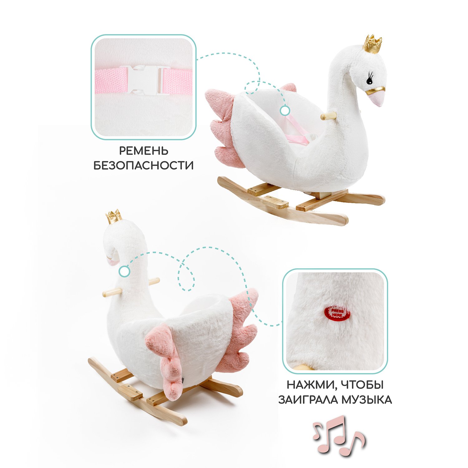Качалка AmaroBaby Лебедь Swan белый 59х35х66 см AMARO-28AS-Be