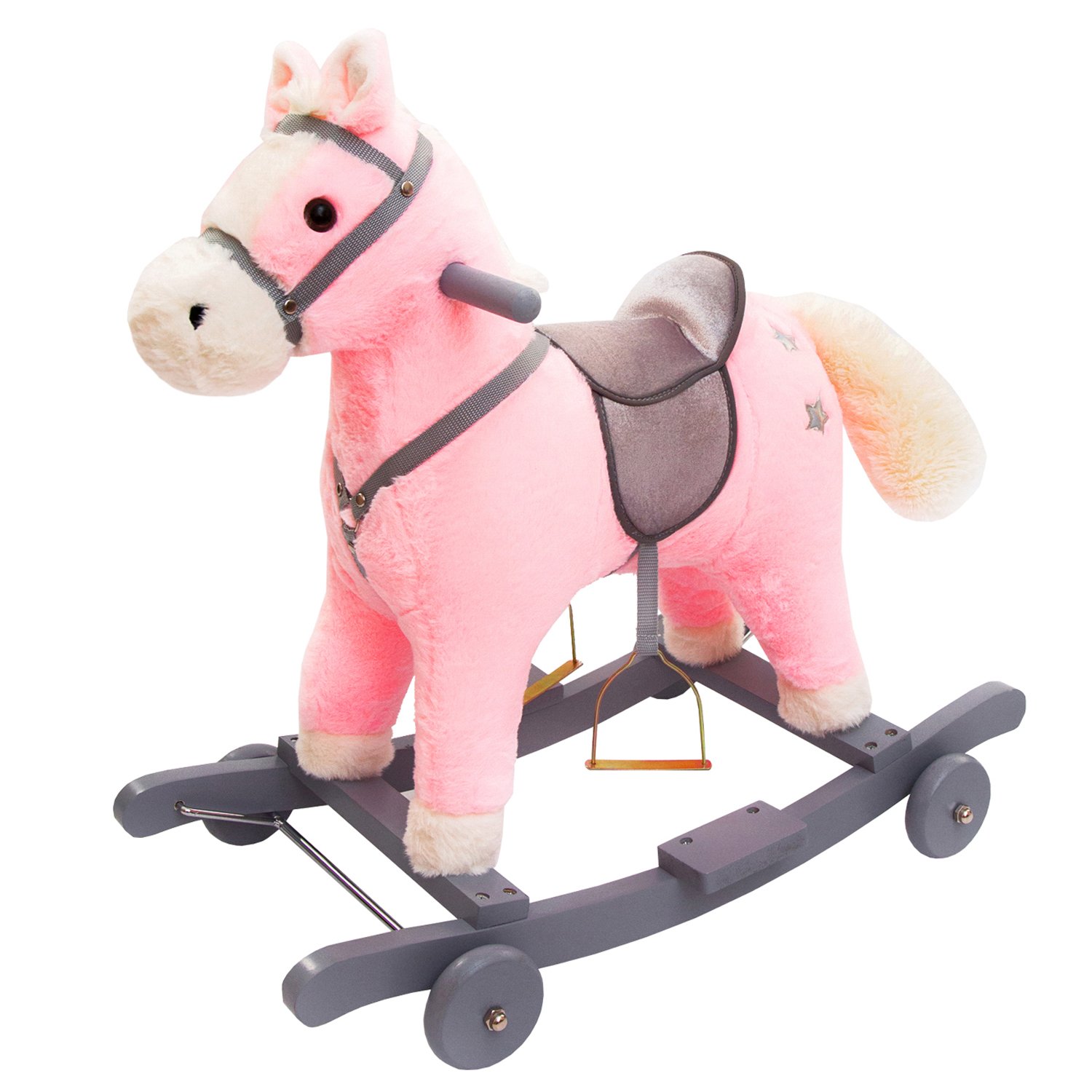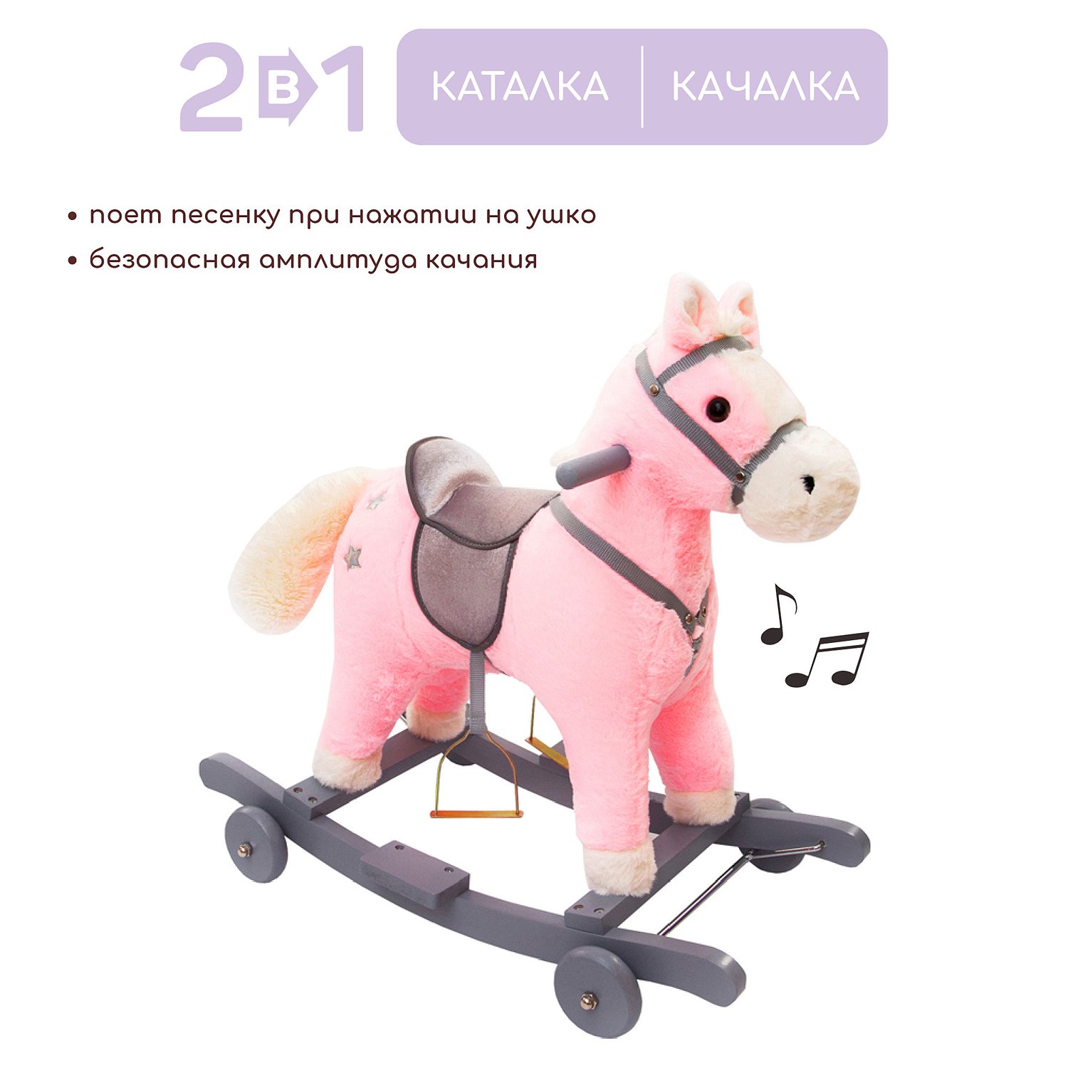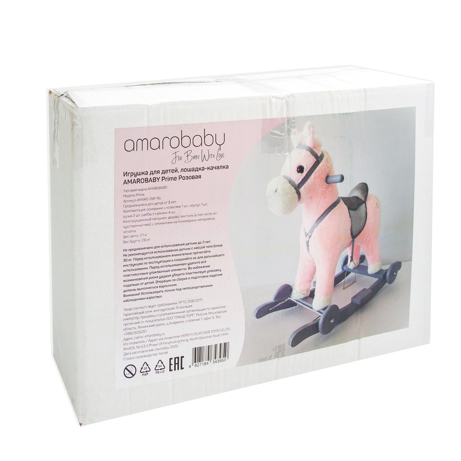 Лошадка каталка-качалка AmaroBaby Prime с колесами розовый 63x35x60 см AMARO-28P-R0