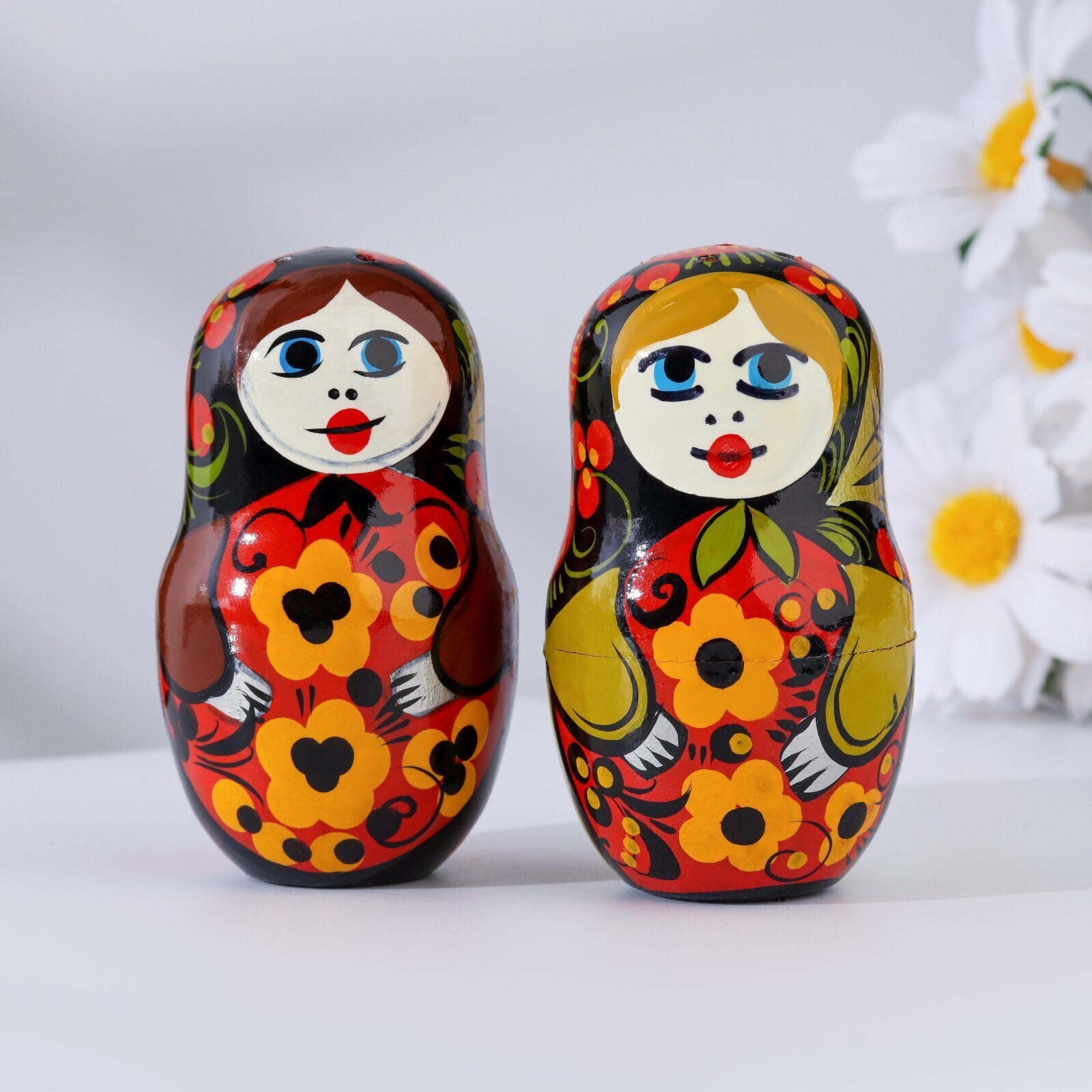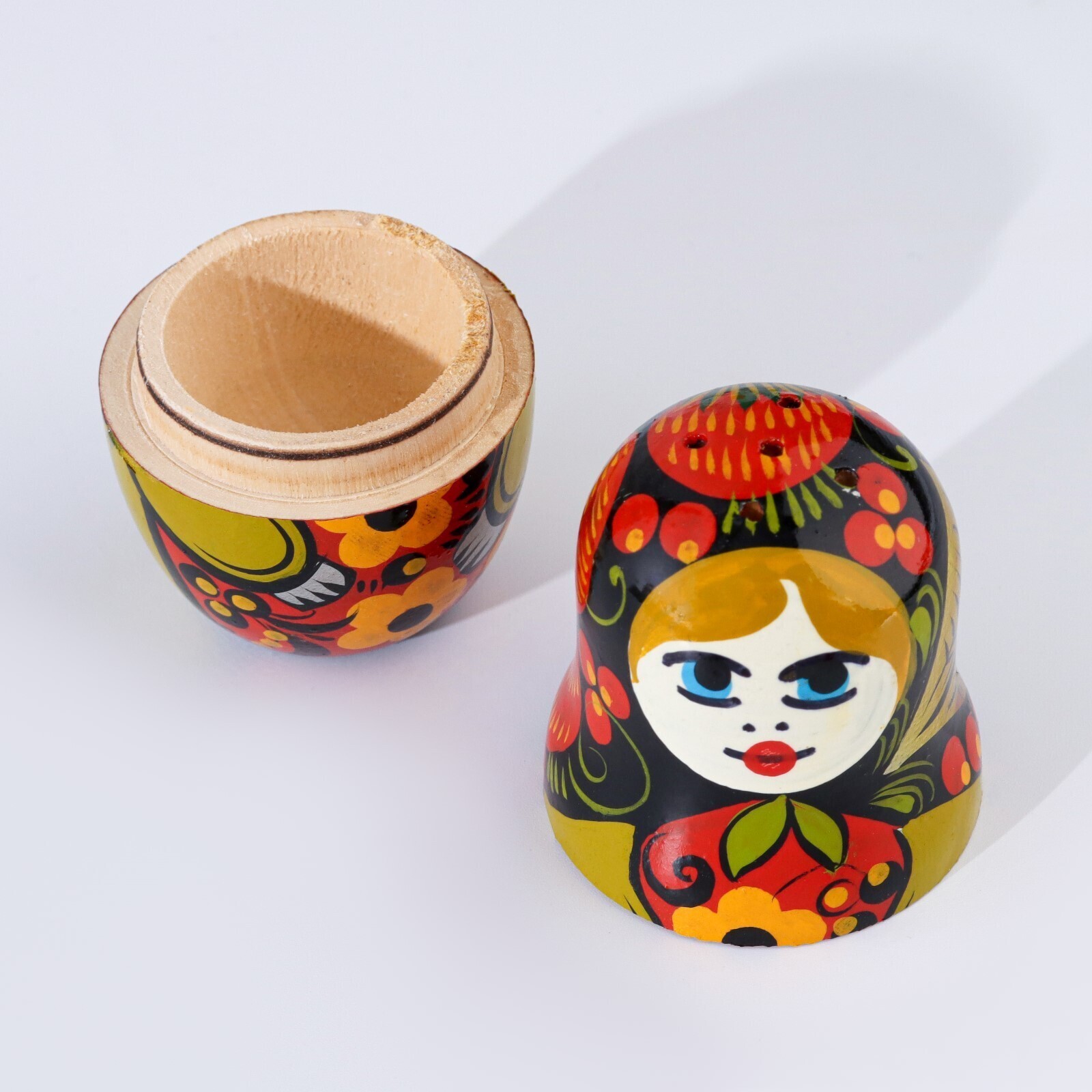 Солонка "Матрёшка", 4х8 см, хохлома, микс
