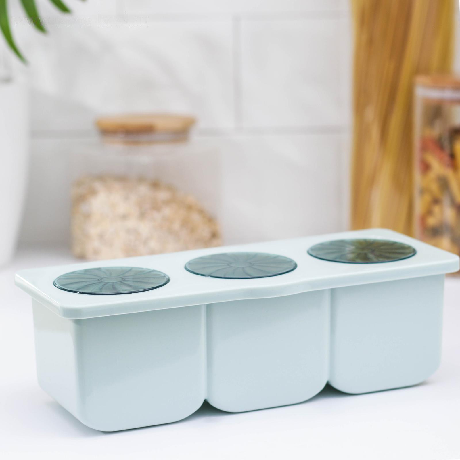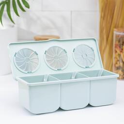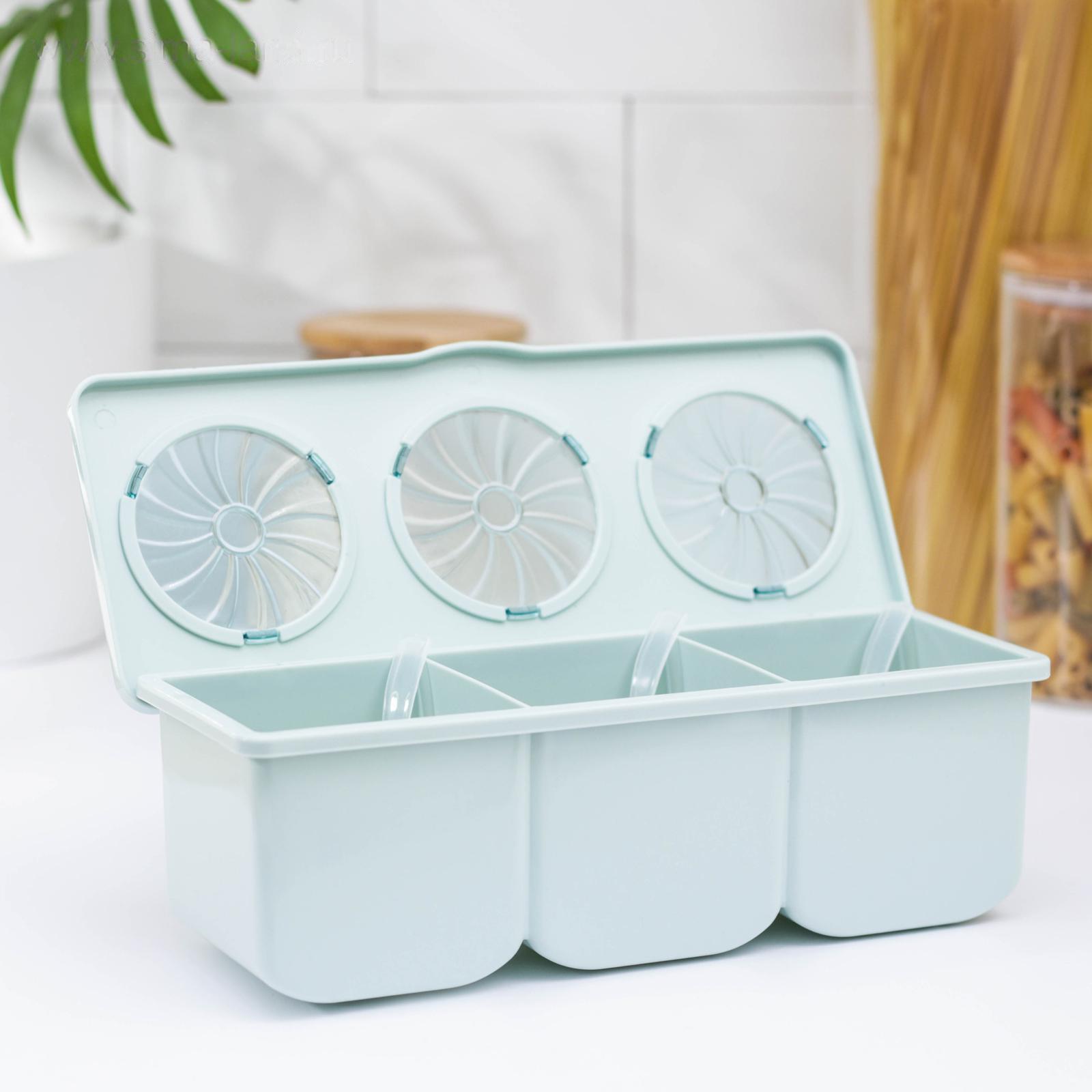 Банка для сыпучих продуктов, 24,5×10×8 см, 3 отделения, 3 ложки, цвет МИКС