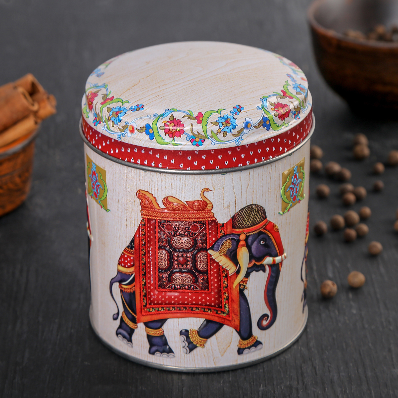 Банка для сыпучих «Индийский слон», 800 мл, 9,9×11 см, круглая, рисунок МИКС
