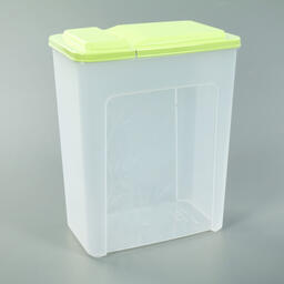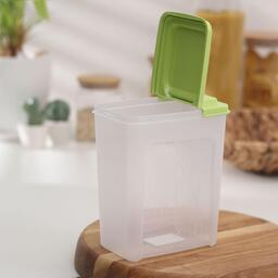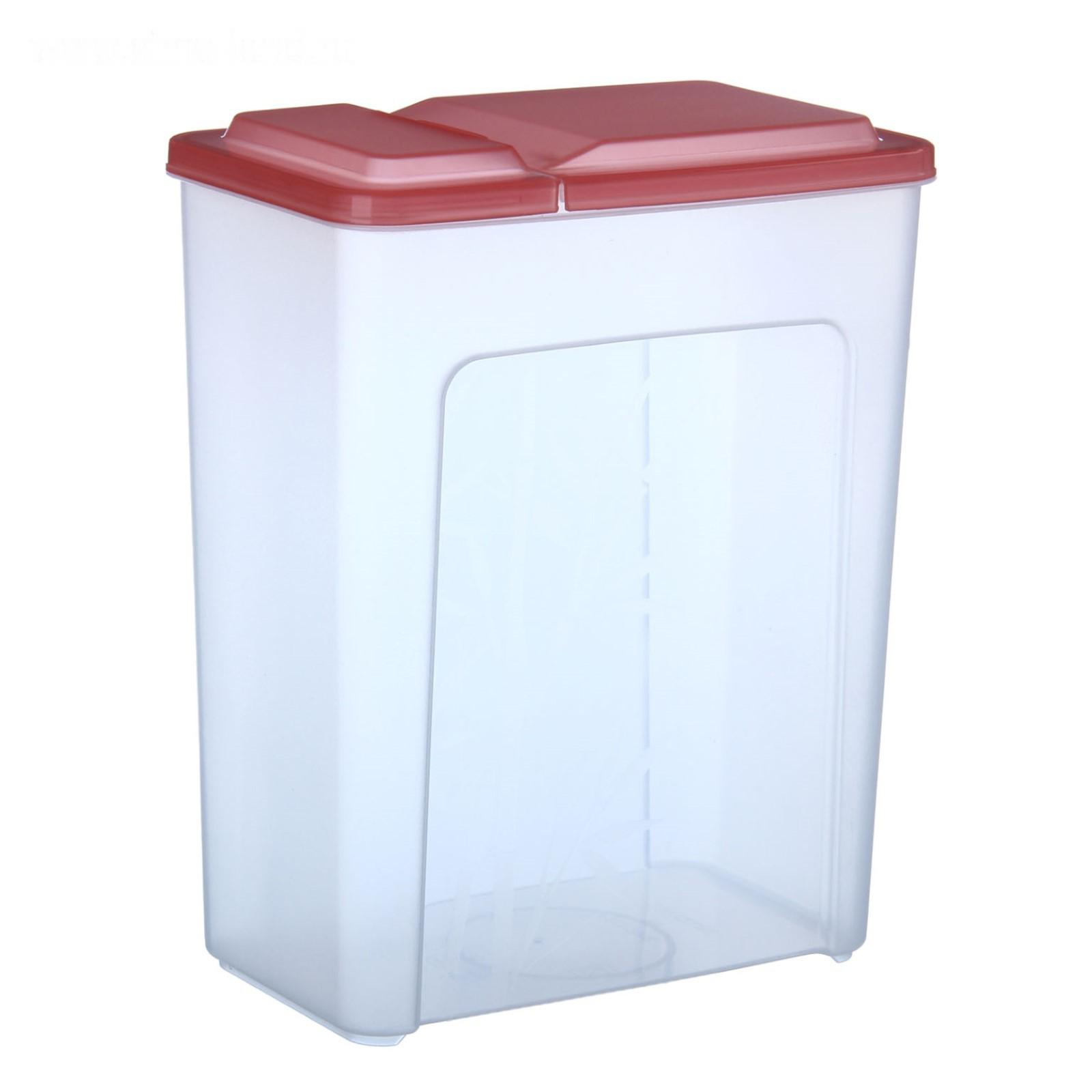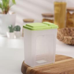 Банка для сыпучих продуктов изготовлена из пластика. Имеет плотно закрывающуюся крышку, которая защищает еду от влаги и посторонних запахов. В ёмкости удобно хранить крупы, специи, макаронные изделия, сахар, муку и бобовые.