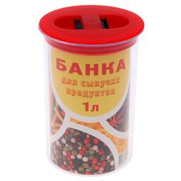 Банка для сыпучих продуктов изготовлена из пластика. Имеет плотно закрывающуюся крышку, которая защищает еду от влаги и посторонних запахов. В ёмкости удобно хранить крупы, специи, макаронные изделия, сахар, муку и бобовые.