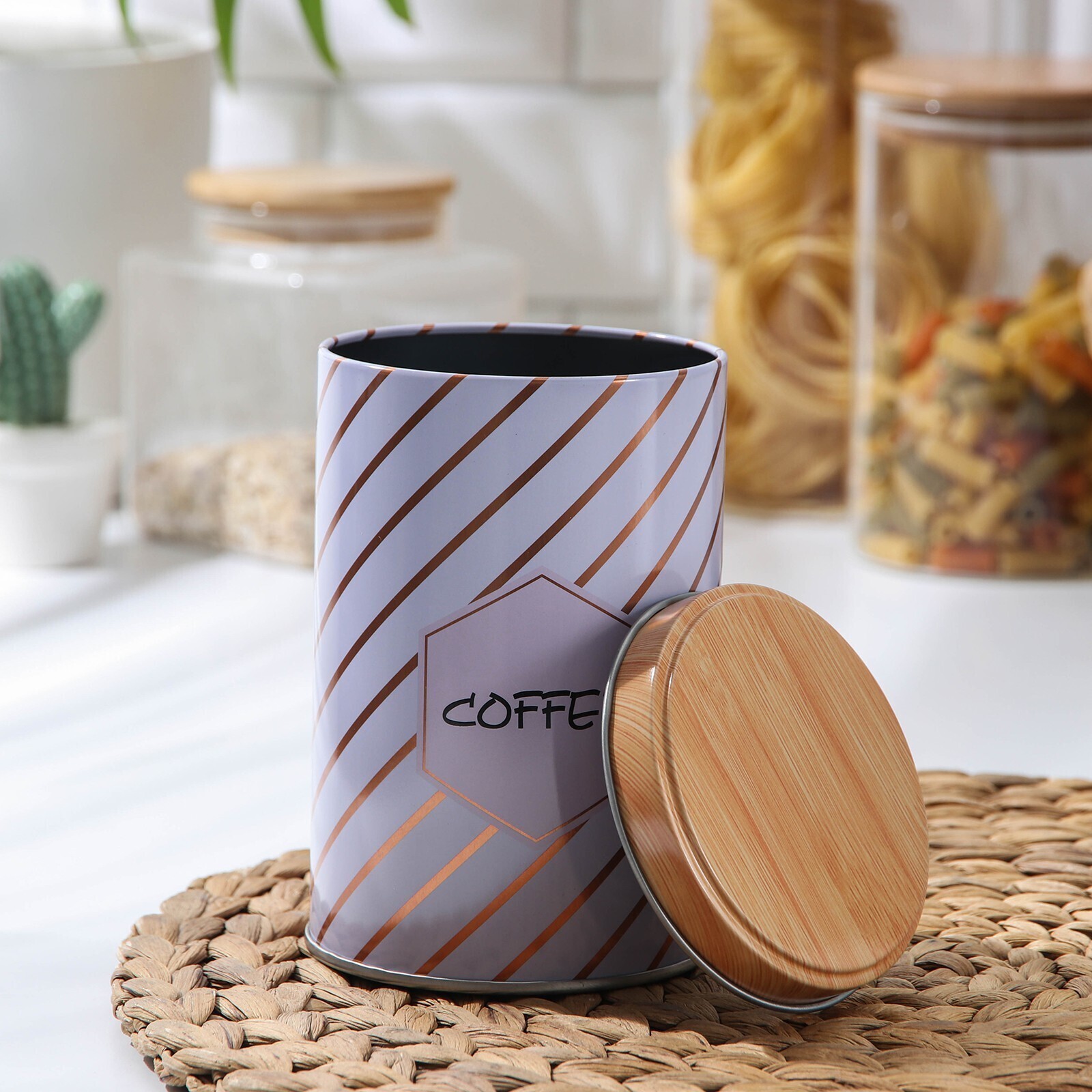 Банка для сыпучих продуктов «Кофе. Линии», 9×13,5 см, цвет белый