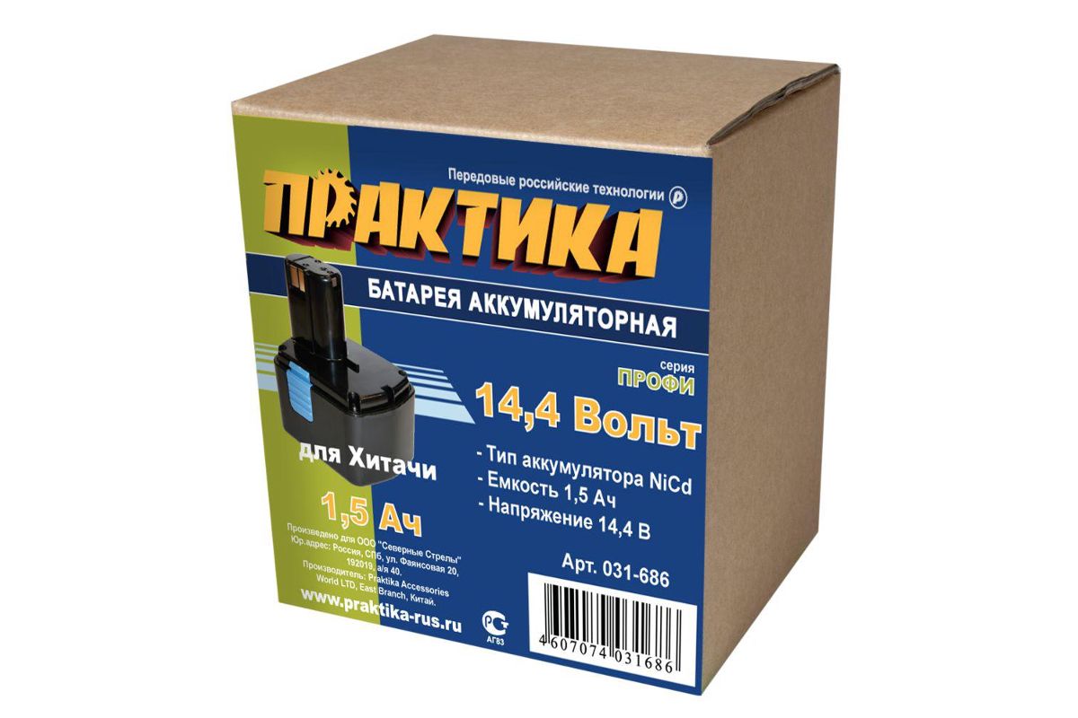 Аккумулятор ПРАКТИКА 031-686 14.4В 1.5Ач NiCd для HITACHI NiCd 14.4В, 1,5Ач, для HITACHI (1шт.) в коробке