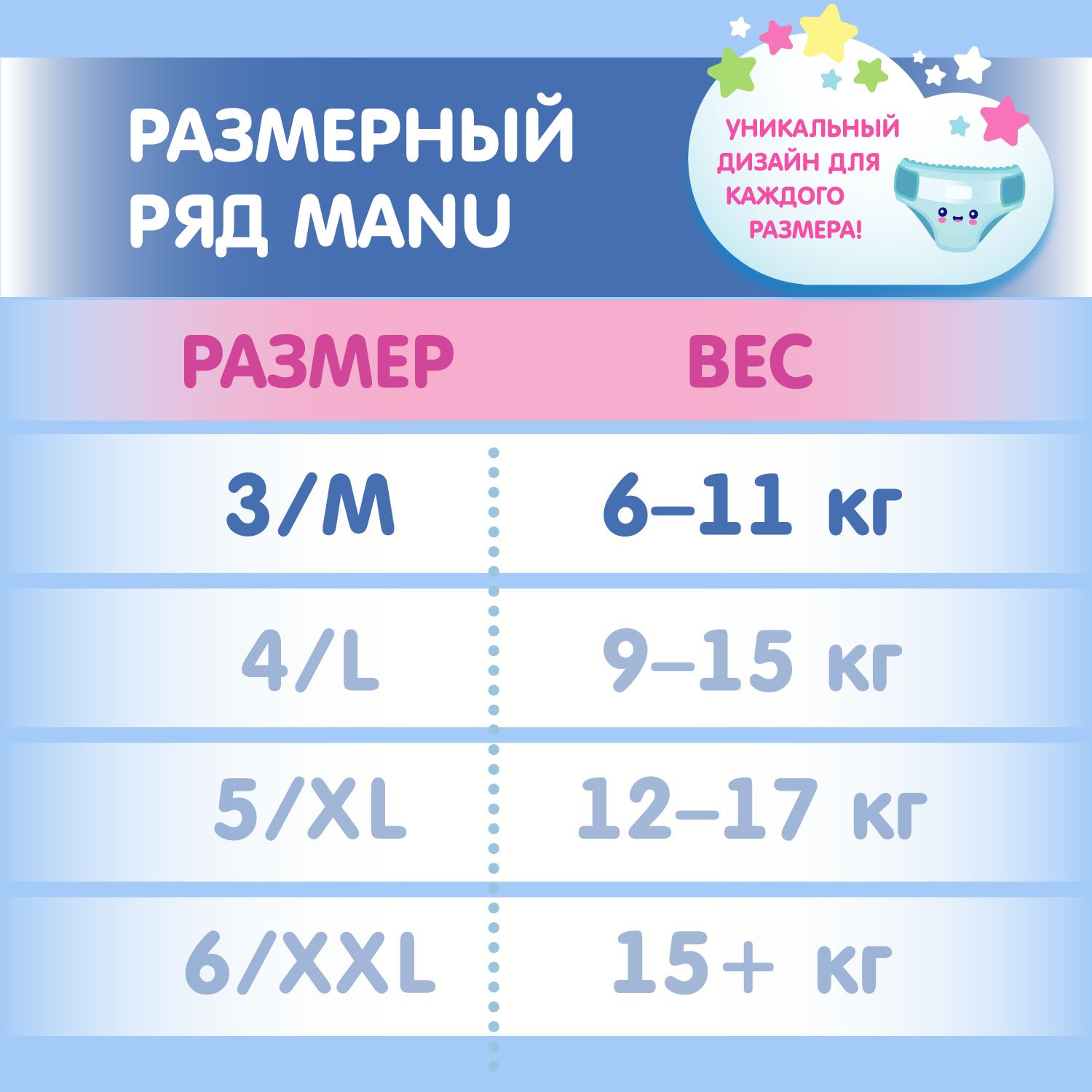 Подгузники-трусики MANU M 6-11кг 60шт PM60