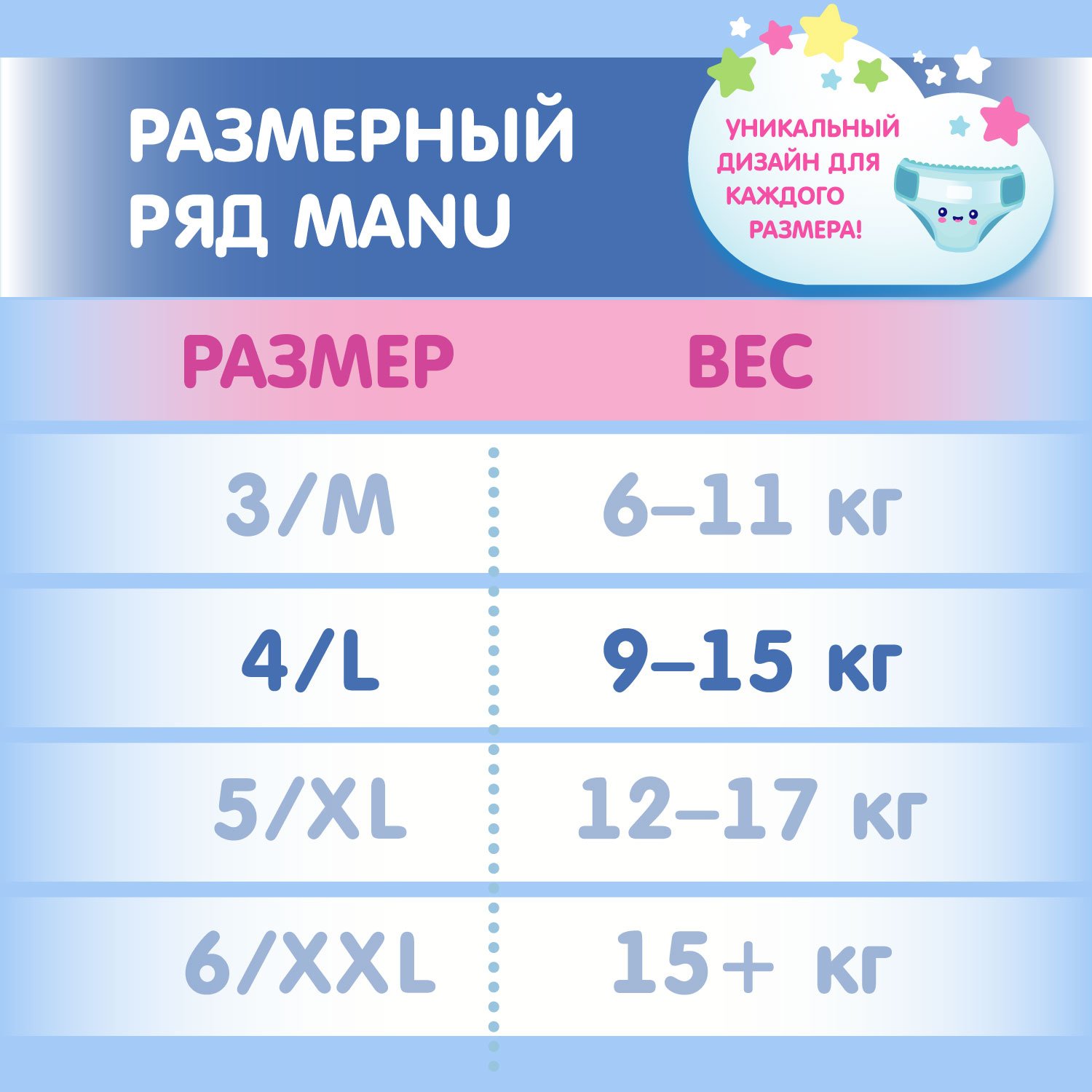 Подгузники-трусики MANU L 9-15кг 52шт PL52