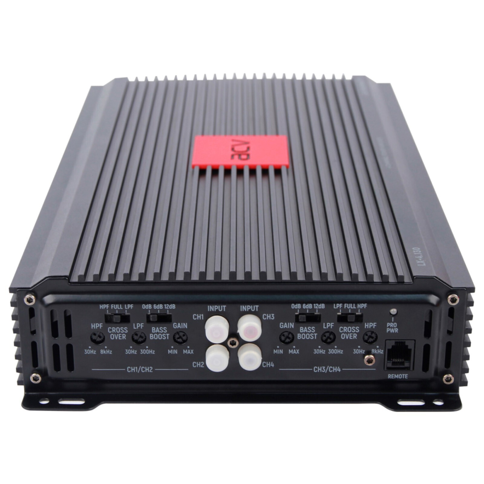 Автомобильный усилитель 4х130 Вт. Четырехканальный усилитель ACV LX-4.130 стал продолжением модели ACV LX-4.100, ставшей очень популярной, он имеет более габаритный корпус и увеличенную мощность по сравнению со своим предшественником. Исполнен в классическом оформлении бренда в черном корпусе.