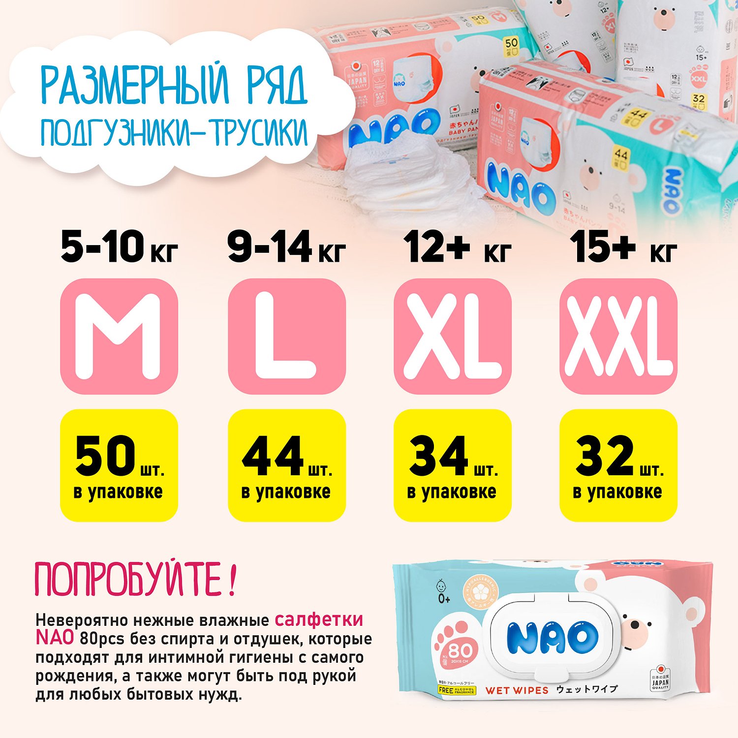 Подгузники-трусики NAO 4 размер L для новорожденных детей от 9-14 кг 44 шт Nao200L