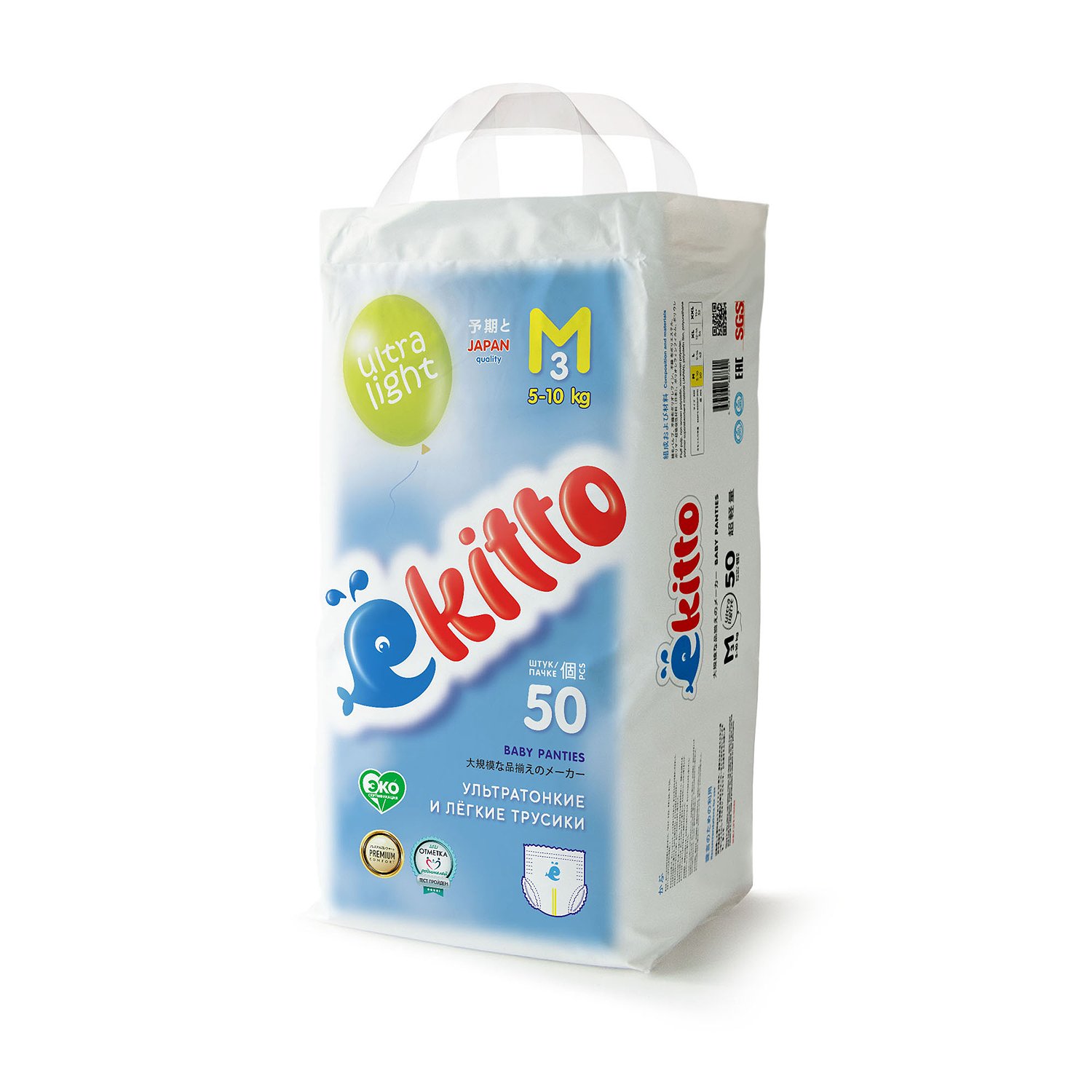 Подгузники-трусики Ekitto 3 размер M для новорожденных детей от 5-10 кг 50 шт EUL200M