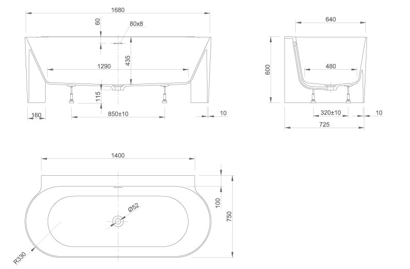 - Габариты (ДхШхВ) 1680x750x600 мм