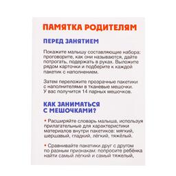 Развивающий набор «Тактильные мешочки», 14 мешочков, ищем парочки