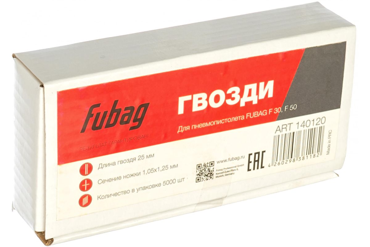 Гвозди для степлера FUBAG для F30 F50 140120 1.05х1.25 25мм 5000шт.