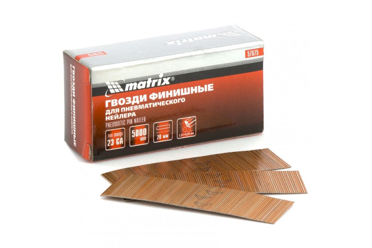 Гвозди MATRIX 57675 финишные (шпильки) 23ga для пневматического нейлера Ф0.64мм 20мм 5000шт