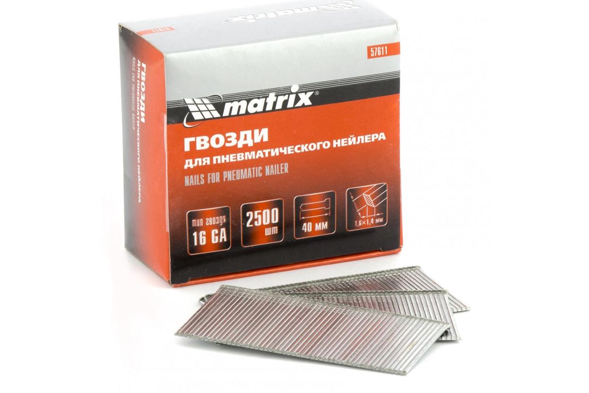 Гвозди MATRIX 57611 16ga для пневматического нейлера сечение 1.6х1.4 длина 40мм 2500шт