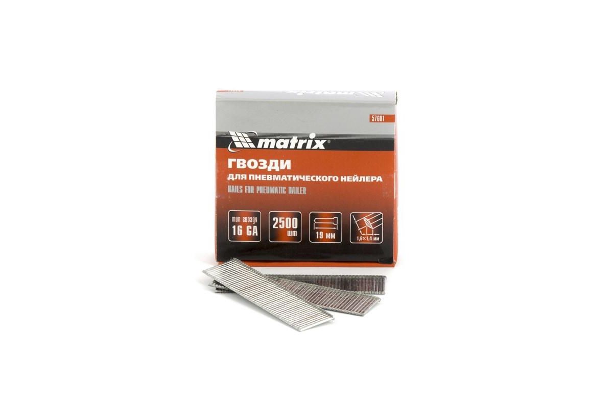 Гвозди MATRIX 57601 16ga для пневматического нейлера сечение 1.6х1.4 длина 19мм 2500шт