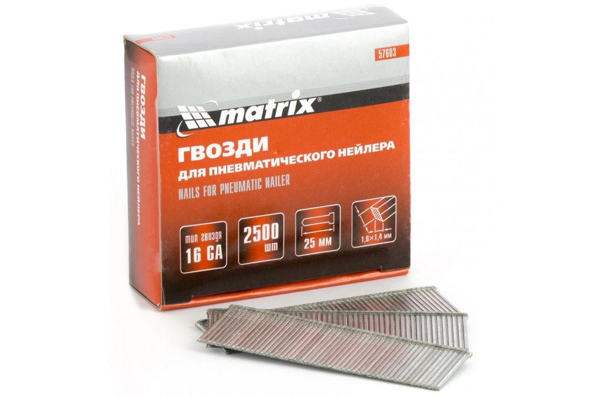 Гвозди MATRIX 57603 16ga для пневматического нейлера сечение 1.6х1.4 длина 25мм 2500шт