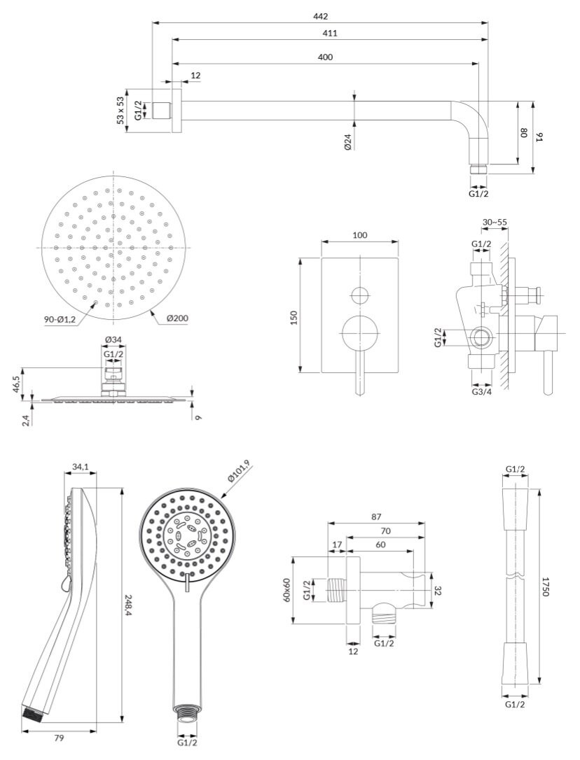 - Комплектация ручной душ (душевая лейка)верхний душ (тропический) / Omnires Ultra SlimLine WGU120CR /смеситель / Omnires Y Y1235/KCR /душевой шлангкрепление ручного душанастенный кронштейн