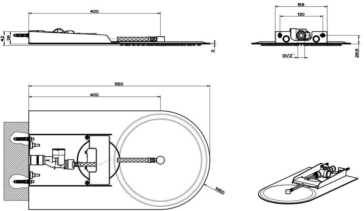 - Комплектация верхний душ (тропический)настенный кронштейн