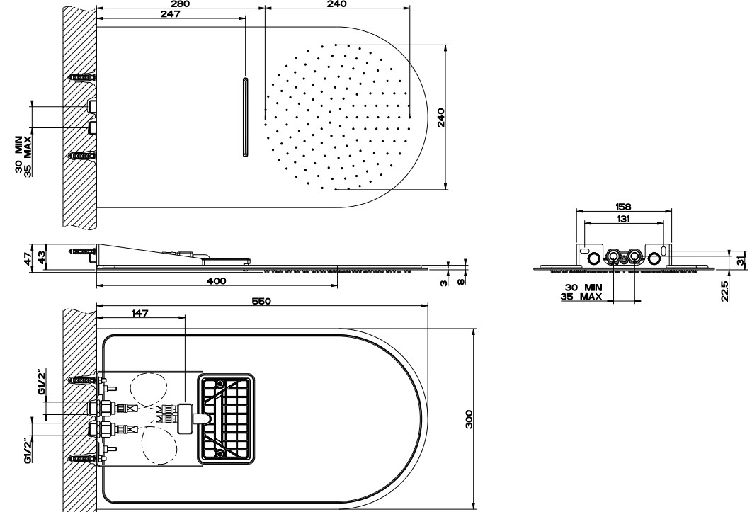 - Тип верхний душ