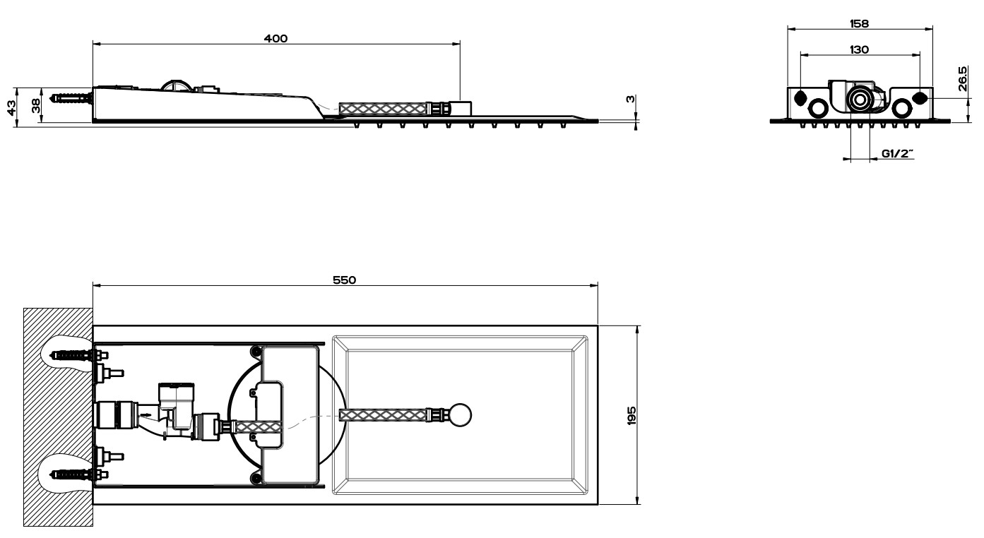 - Комплектация верхний душ (тропический)настенный кронштейн