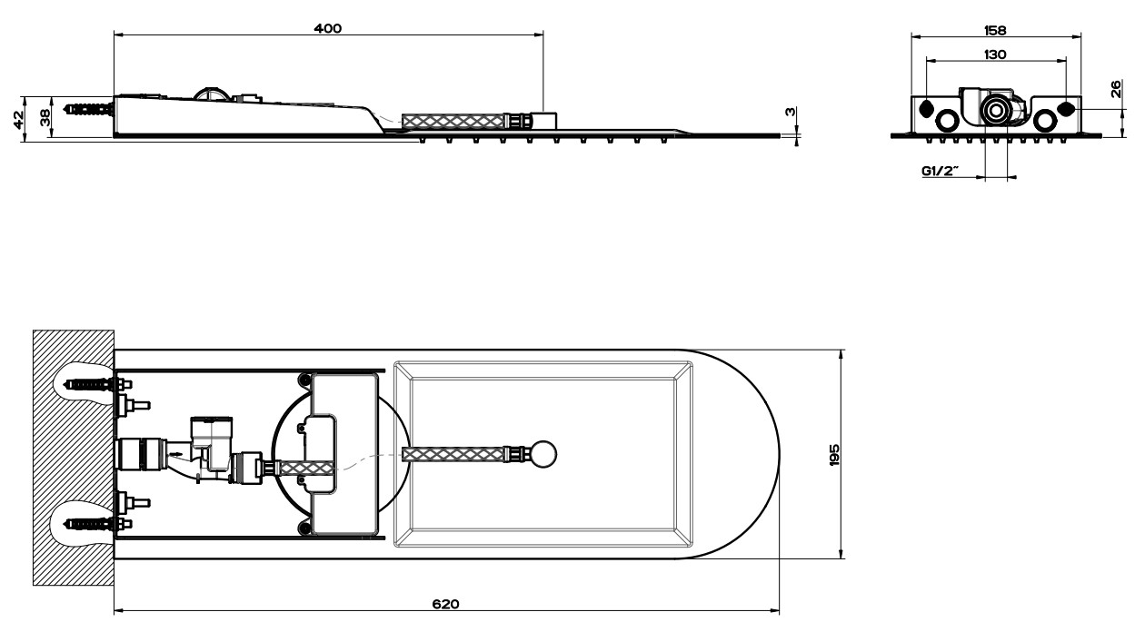 - Комплектация верхний душ (тропический)настенный кронштейн