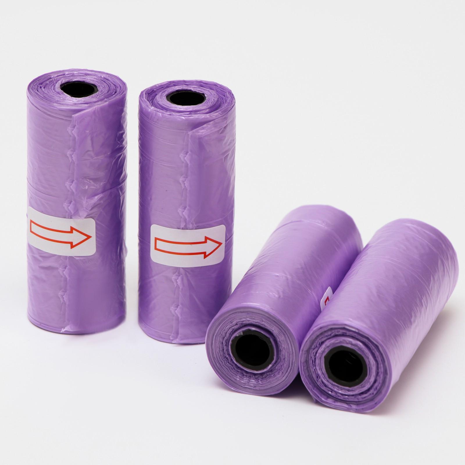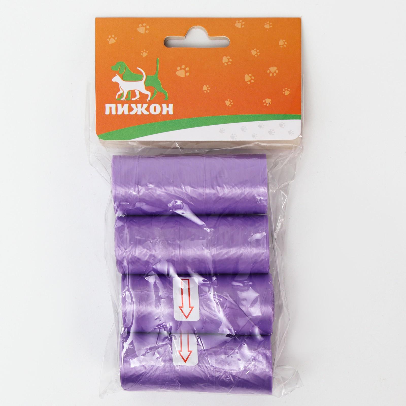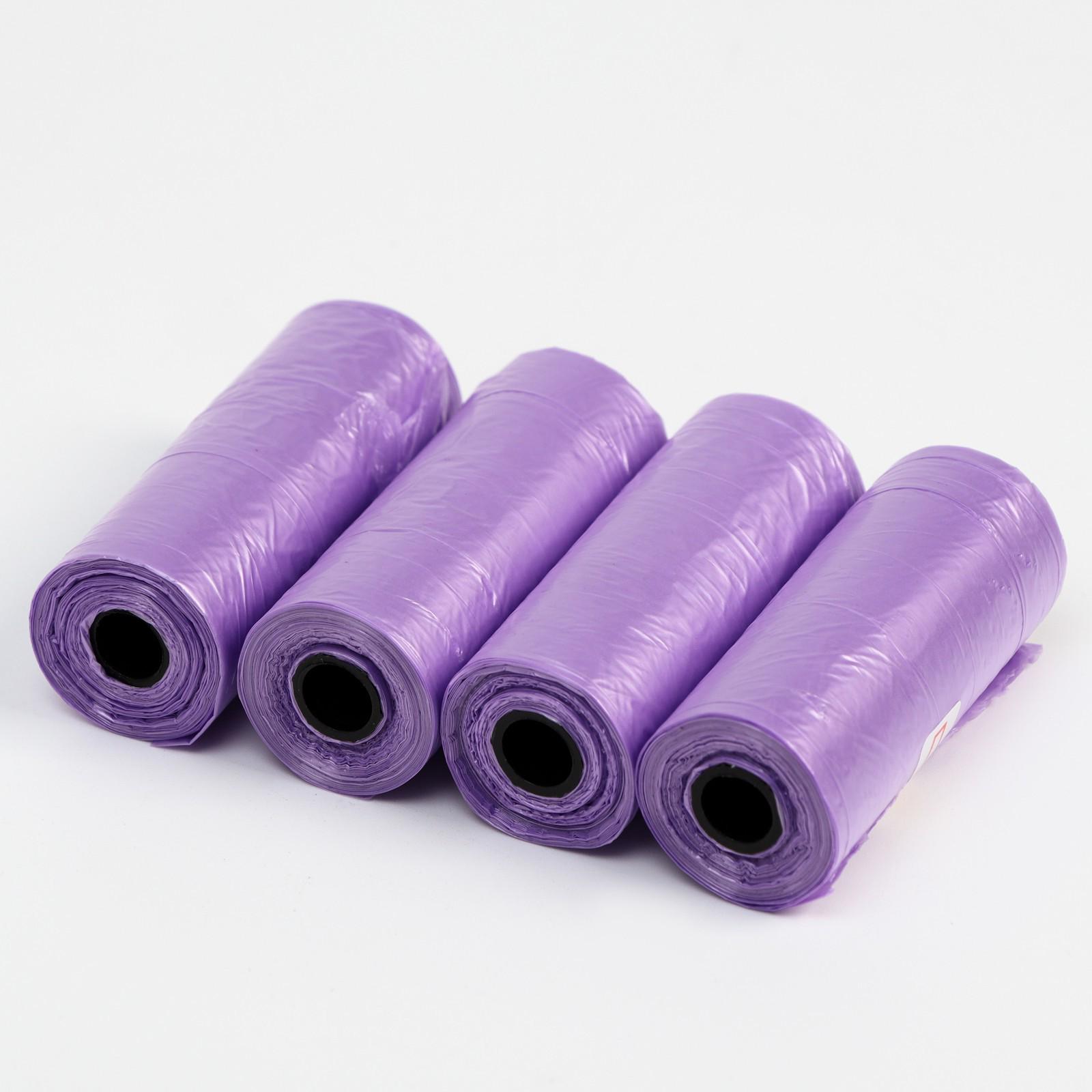 Пакеты для уборки за собаками однотонные (4 рулона по 15 пакетов 29х21 см), фиолетовые