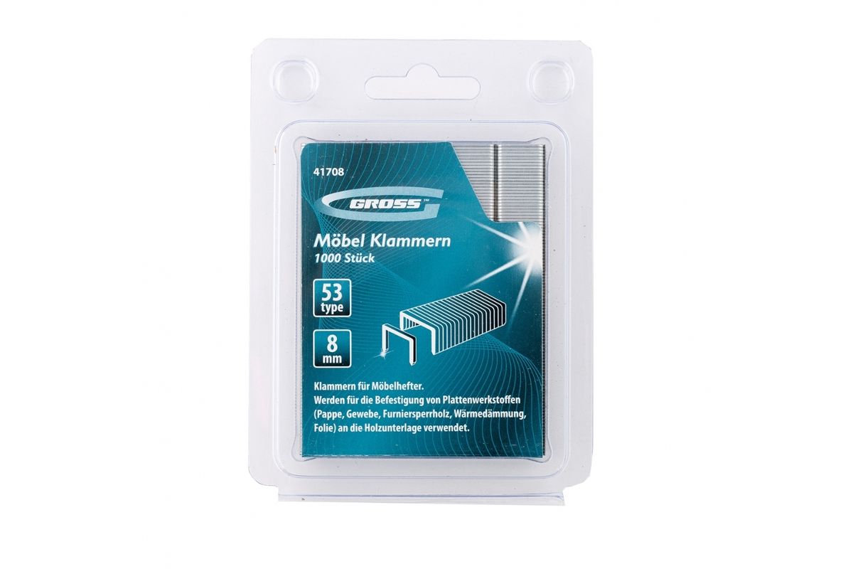 Скобы для степлера GROSS 41708 8 мм, тип 53, 1000 шт.