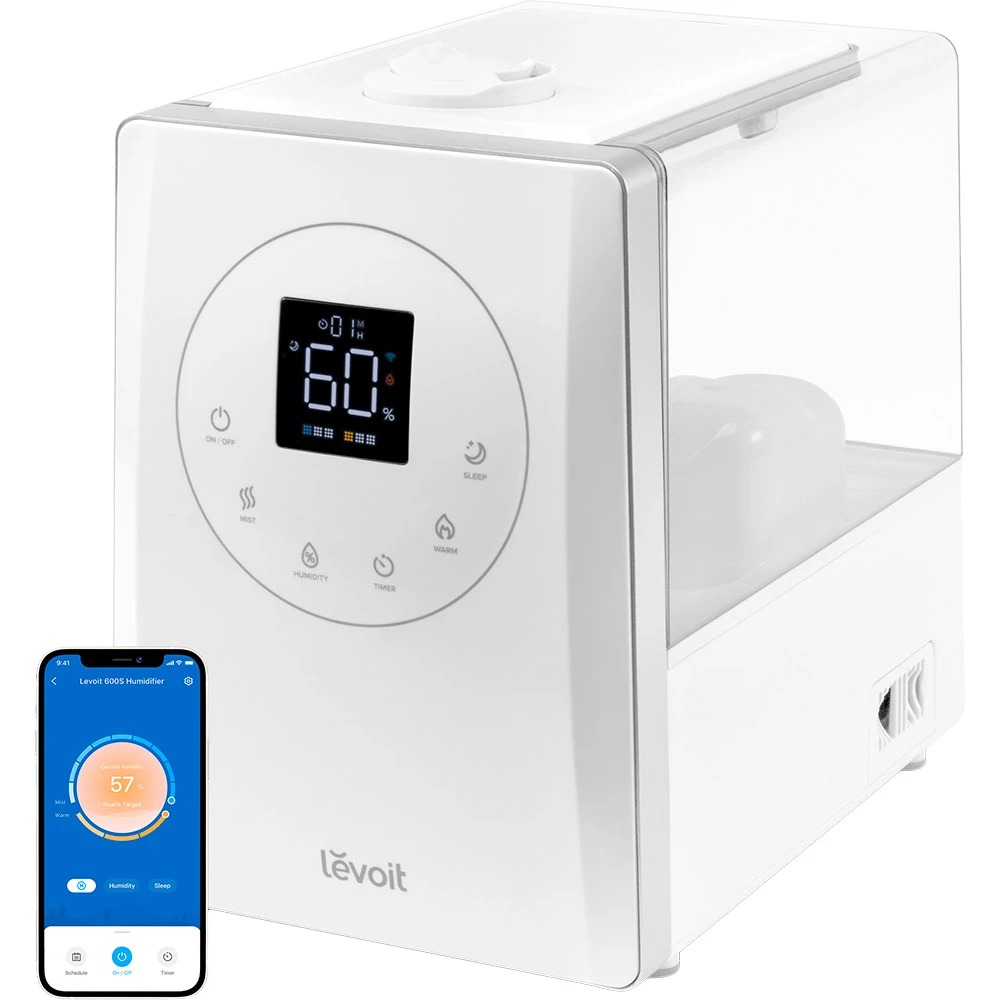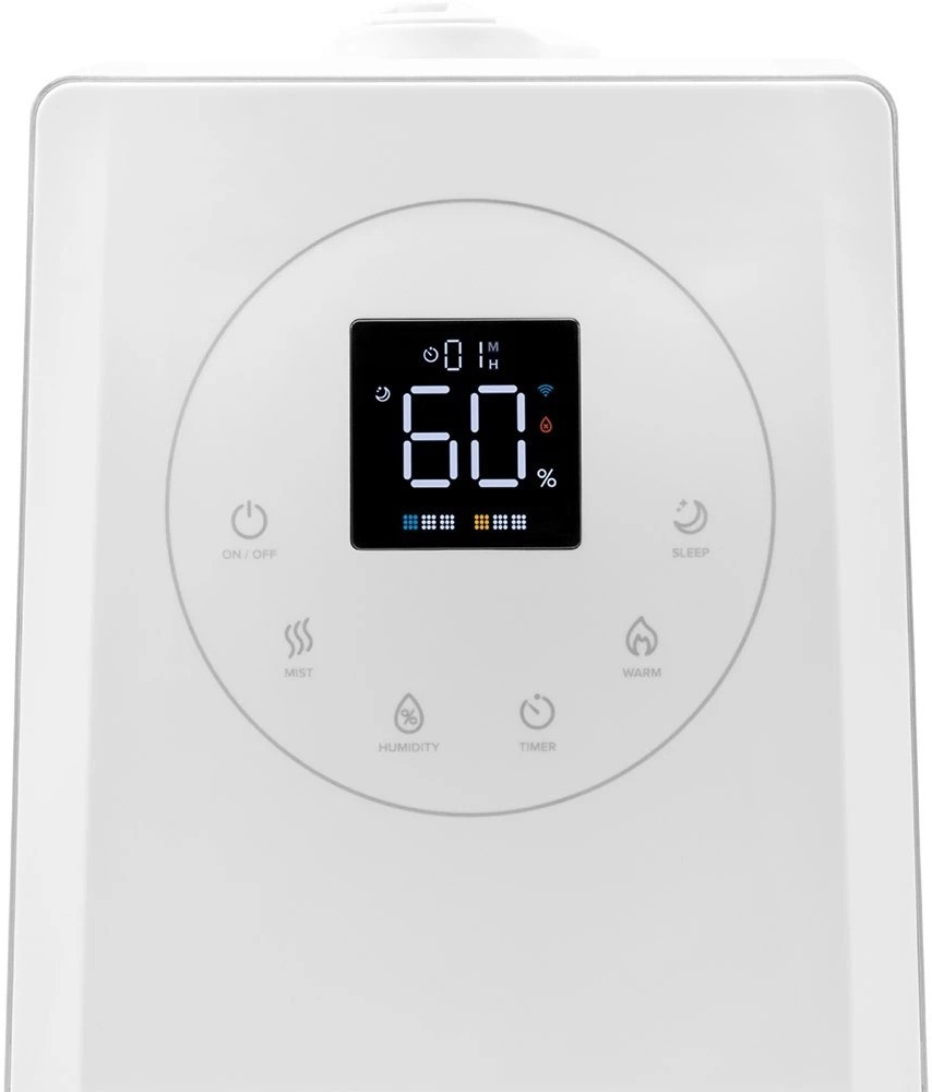 Функциирегулировка влажности (гигростат)регулировка производительностиночной режим работыароматизатортеплый партаймер отключенияотключение при отсутствии водывращение испарителядисплейиндикатор влажностиуправление через ИнтернетGoogle Assistant и Amazon Alexa