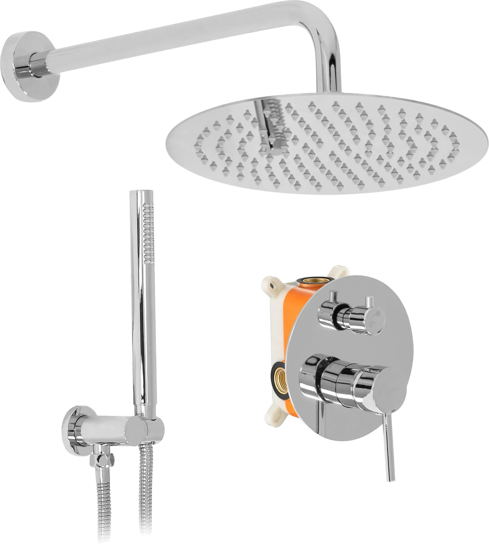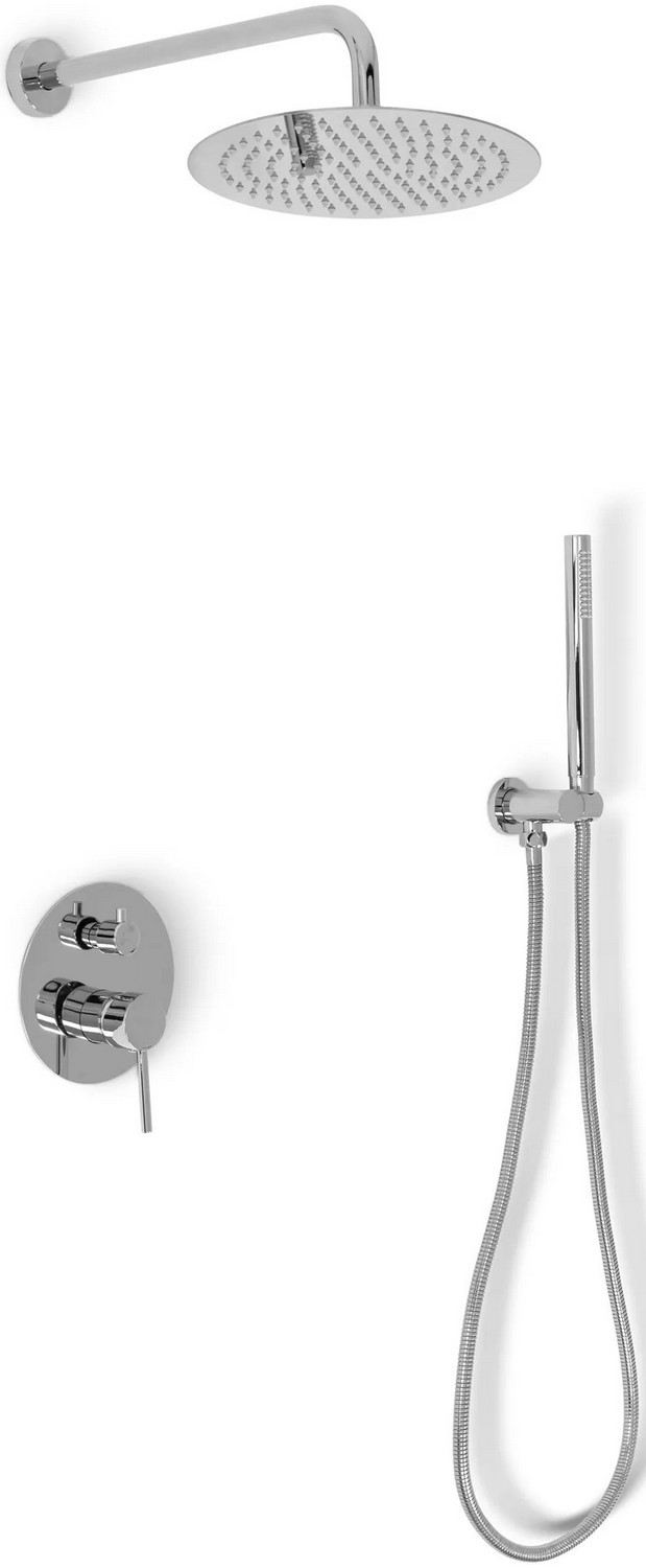 • Комплектация ручной душ (душевая лейка)верхний душ (тропический)смесительдушевой шлангкрепление ручного душанастенный кронштейн