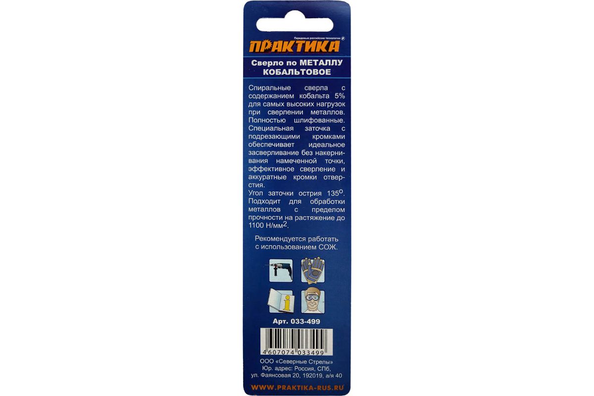 Сверло по металлу ПРАКТИКА 033-499 5.0х86мм кобальтовое, в блистере