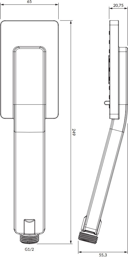 • Комплектация ручной душ (душевая лейка)верхний душ (тропический)смесительдушевой шлангкрепление ручного душанастенный кронштейн